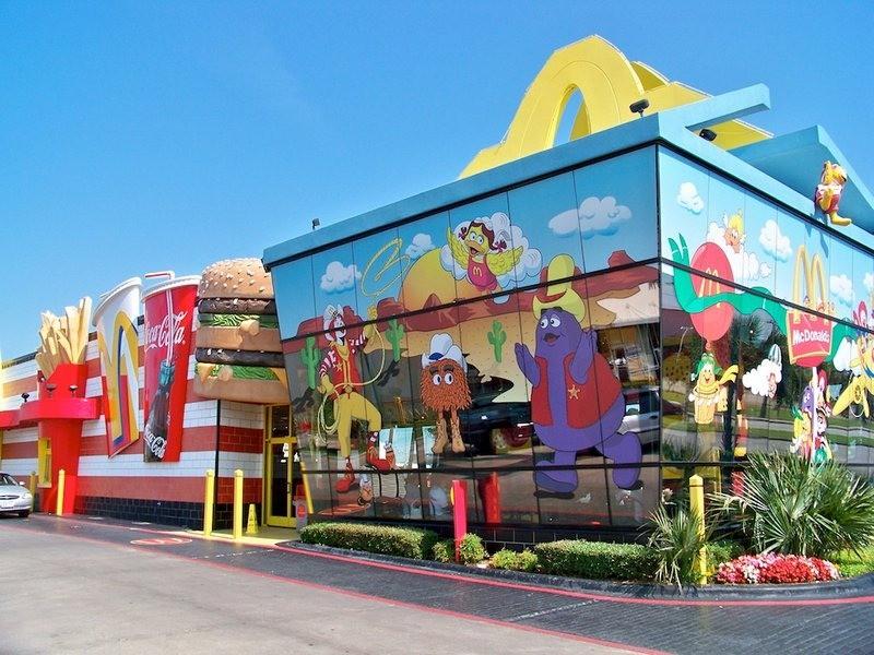 德州這間麥當勞,如果是十年前的我,看到一定會尖叫歡呼,「快樂兒童餐」是每個小朋友的回憶,以前就連餐盒我都要帶回家,結果這間麥當勞竟然就是以快樂兒童餐的餐盒為外型,oh my God!除了麥當勞叔叔,其他的經典角色也都全部經典重現,我好想去跟它們拍照喔!!