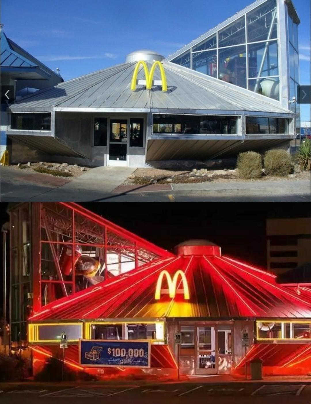 位於新墨西哥州-羅斯威爾市的這間以「飛碟」為造型的麥當勞,又是一個超夯的打卡景點了!為什麼會用飛碟當作造型呢?在1947年,曾經有一艘不明的飛行物體墜毀在這裡,民間謠傳是外星人登入地球,有許多科學研究者都慕名前去,所以這間麥當勞也跟隨流行,外星一波囉!