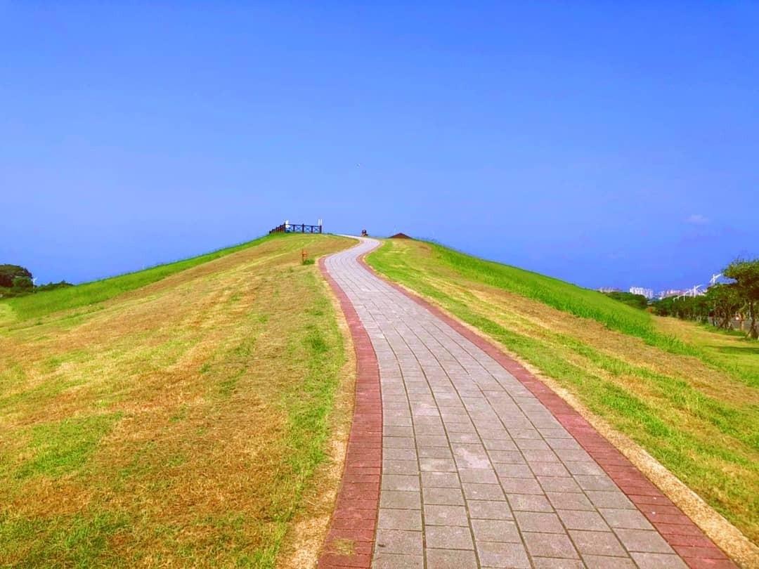 八里米菲兔公園,親子好去處 微風吹拂,雖有太陽,卻不會覺得熱,適合小孩放電的地方,很多爸媽帶著帳篷野餐,有的人野餐有的人放風箏,騎單車,往高坡走到終點,能俯瞰淡水八里,景色很美 #米菲兔公園 #八里景點
