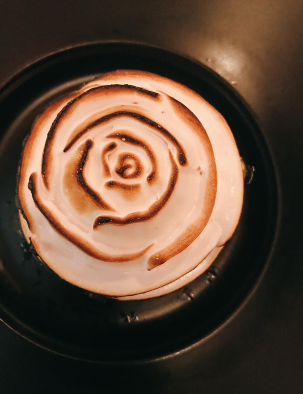 他來的時候,在盤子上點火燒到鮮奶油上,燒到的地方剛好就是玫瑰的輪廓,裡面水蜜桃冰淇淋。 真心覺得很好吃!所以分享給大家。