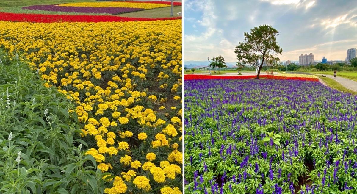延路的花都被整理的非常整齊,大紅大紫大黃大白的台式經典配色,吸引不少路過的人留下來拍照。