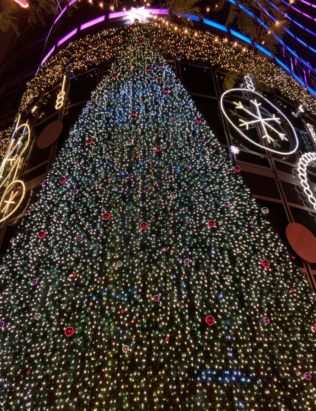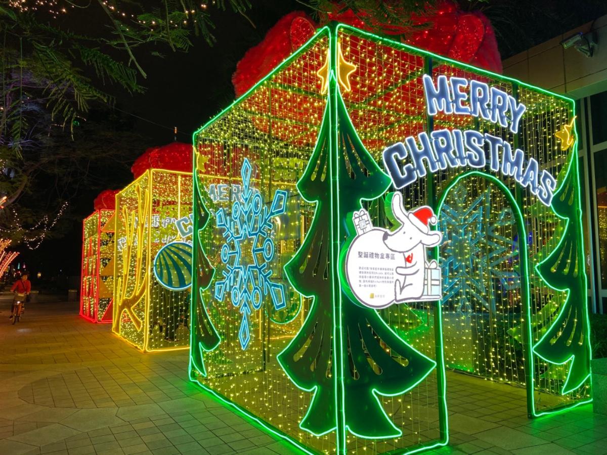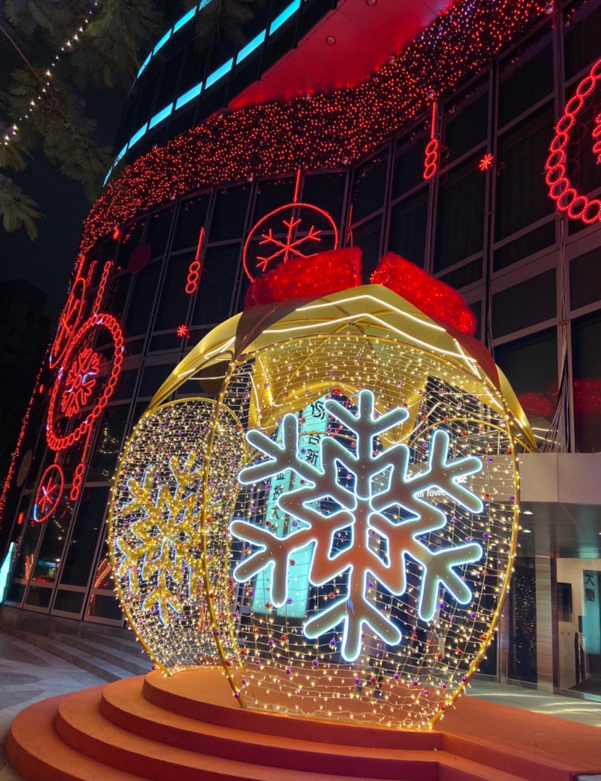 台北市也很多裝置藝術 扣除板橋外,信義區周邊都非常好拍 信義區的台新商銀前有一片沒人注意到的 裝置藝術,大家路過可以去拍拍優,連路樹都非常美!遠處觀望也非常壯觀,而且人不多,不需要在新北耶誕城人擠人,拍到的都是人