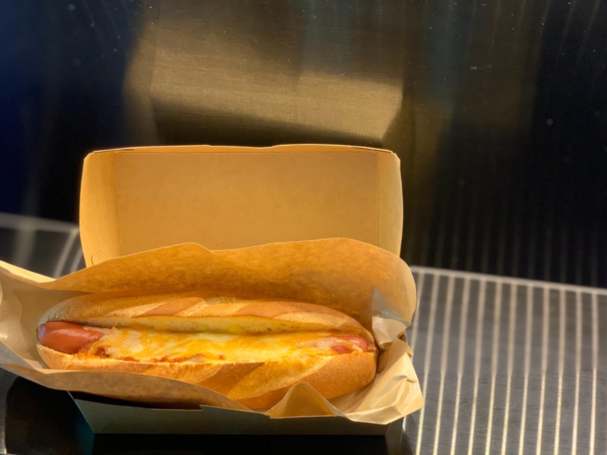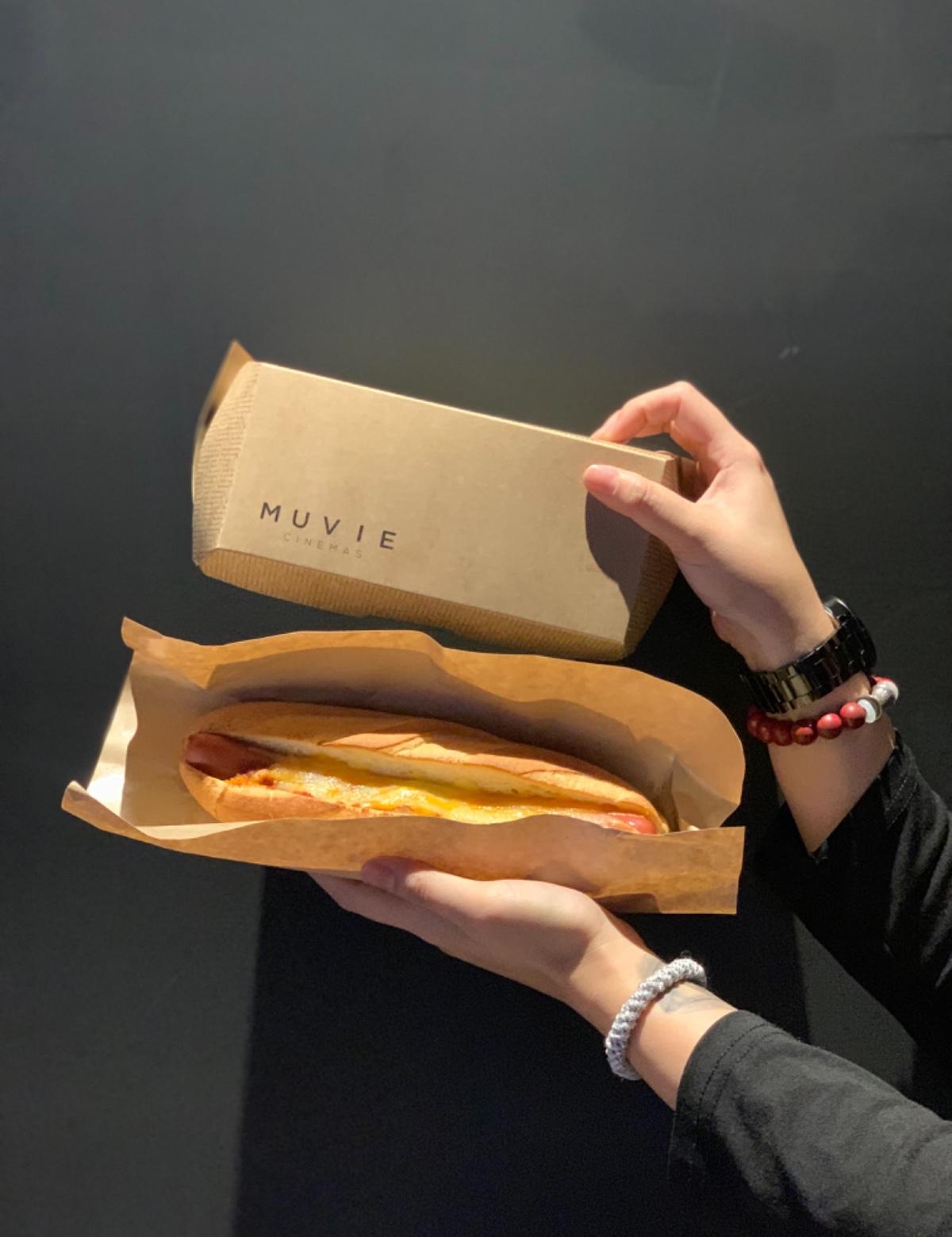 這次只買了熱狗堡吃,當然也跟一般威秀不同,熱狗堡也升級了,變成一個138的焗香軟法肉醬熱狗堡,軟法麵包很酥脆我很愛,肉醬的香料味也很加分,價錢變貴但美味也是有感提升。