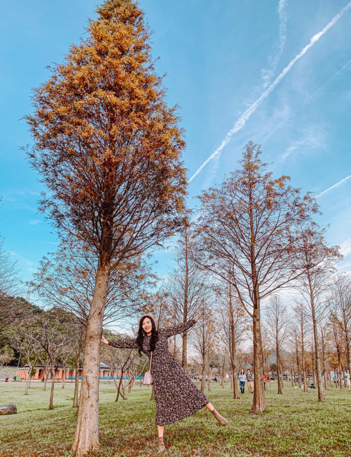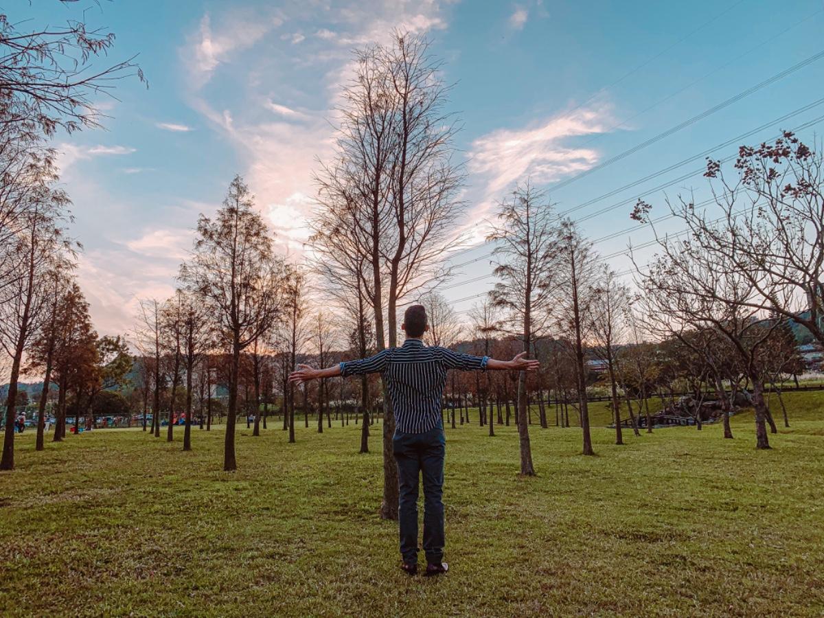 * 上禮拜週末天氣很好 天空紫色的晚霞也很美 大概四點多到大溪河濱公園散散步 意外發現河濱公園竟然這麼美 好像外國公園景致😺😺 住在這邊小朋友也太幸福了。 - 香菇雨傘☂️樹好可愛 忘了說公園很大 三五朋友一起來野餐很可以 停車場也免費👍 - ❣️桃園市大溪區大鶯路60巷89弄75號 #大溪河濱公園 #落羽松 #雨傘樹 #晚霞好美