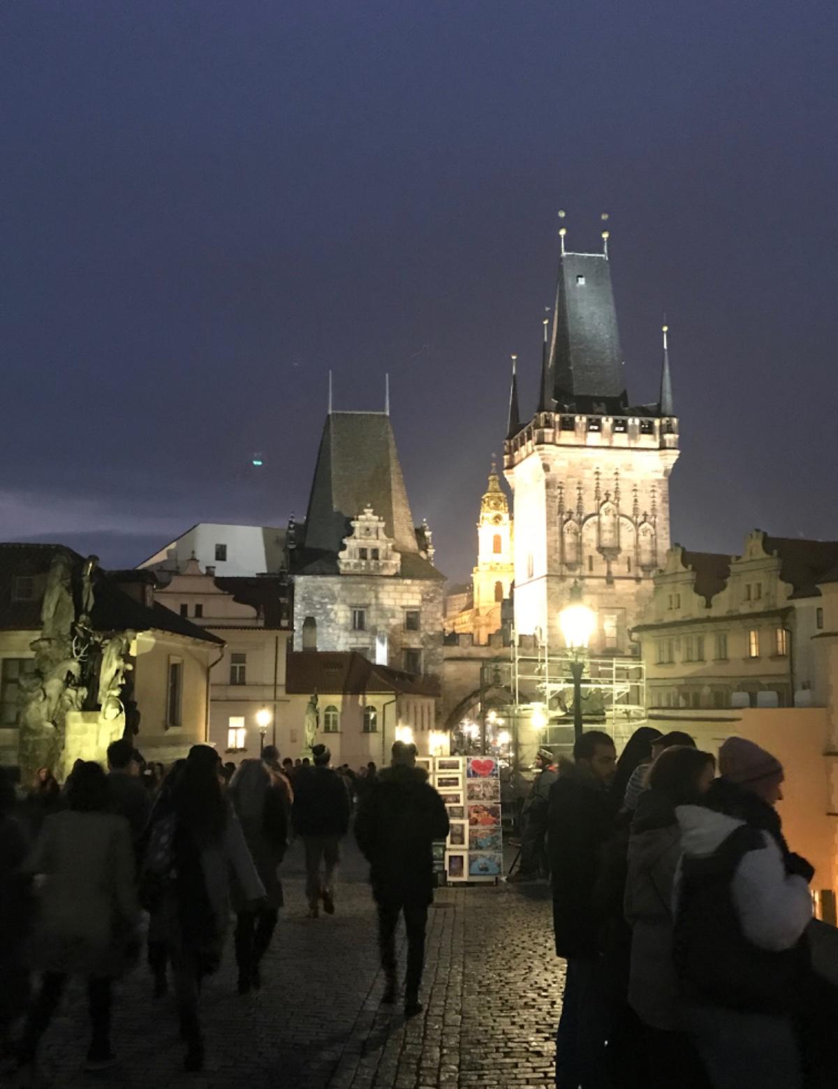 夜間的查理大橋非常熱鬧,有非常多的小販跟街頭藝人;推薦可以買當地街頭畫家的作品,但價錢就要看各位是否能接受!可以試著殺價看看,不過他們講的也不是英文XD