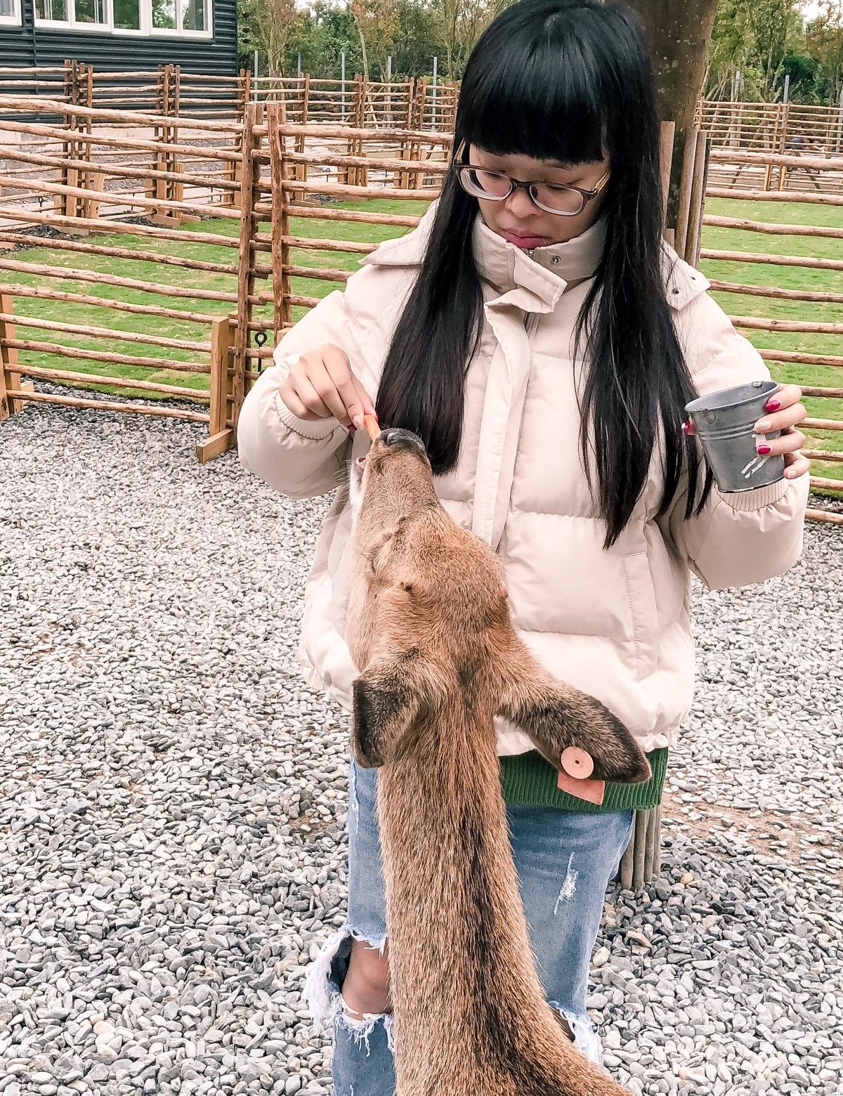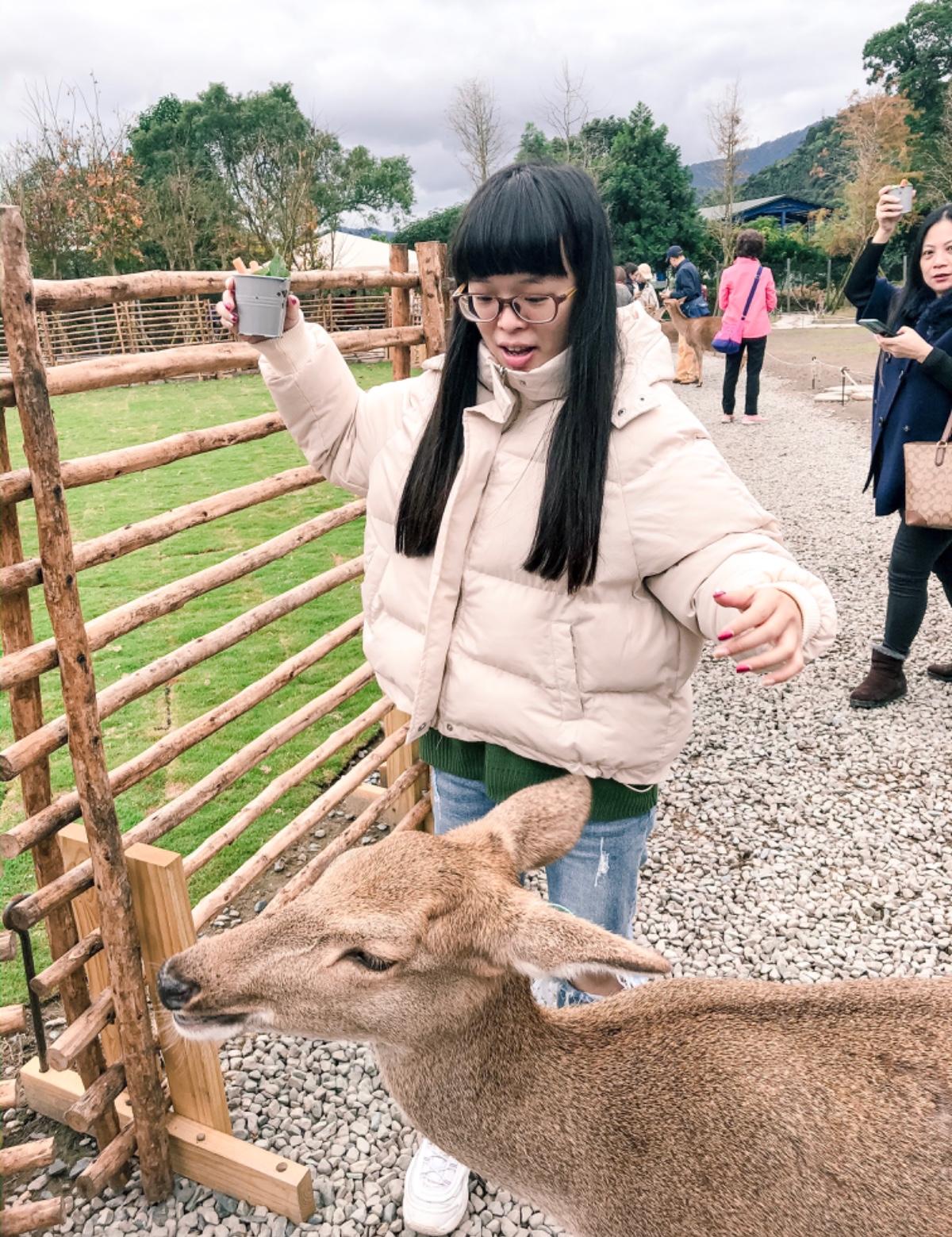 入場要先在外面購票,門票可以兌換飼料,換的胡蘿蔔🥕很少才四根😂,進去餵鹿之前會先把大家集合講解,讓大家知道路線跟注意事項,最幸運的是可以看到出生三個月的小鹿🦌好可愛喔,地上都會有鹿的💩要小心,但如果踩到也有沖洗的地方,因為換的紅蘿蔔太少我們直接買來餵而且份量超多,一份40$好像每天飼料不一樣,之前看到還有草但那天都是紅蘿蔔,去過奈良之後就知道斑比山丘的鹿隨和很多😂,但牠們有個共同點就是會在攤販旁邊開始騷擾買飼料🥕的人類,看到食物就會開始往你那邊走,而且會撞人因為我們都被撞🤣,這裡的鹿不多所以不會有一群衝過來的可怕景象,在餵的時候還聽到牠們的叫聲超可愛😍,很像小孩子在撒嬌的聲音,最好笑的是我們居然看到鹿打架🤣,男友在餵一隻旁邊突然又來一隻,一起搶食結果直接給我pk起來嚇爆我😂,本來以為會下雨結果天氣很好只是比較冷,在這裡可以跟鹿互動以外,還可以去園區裡的美美子咖啡廳,下一篇就來介紹美美子的餐點