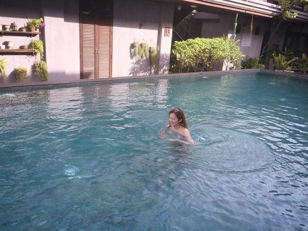 我們在泳池的旁邊點了小點心吃,其他旅客也躺在附近躺椅享受陽光。