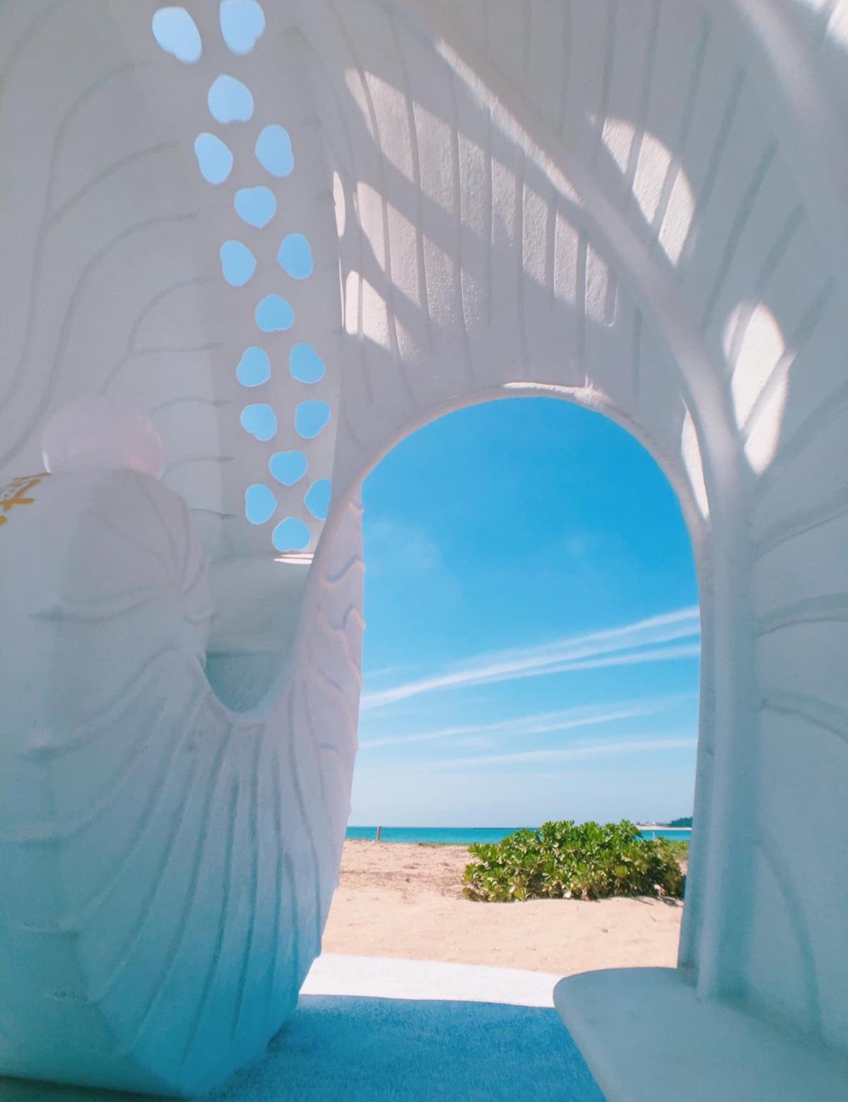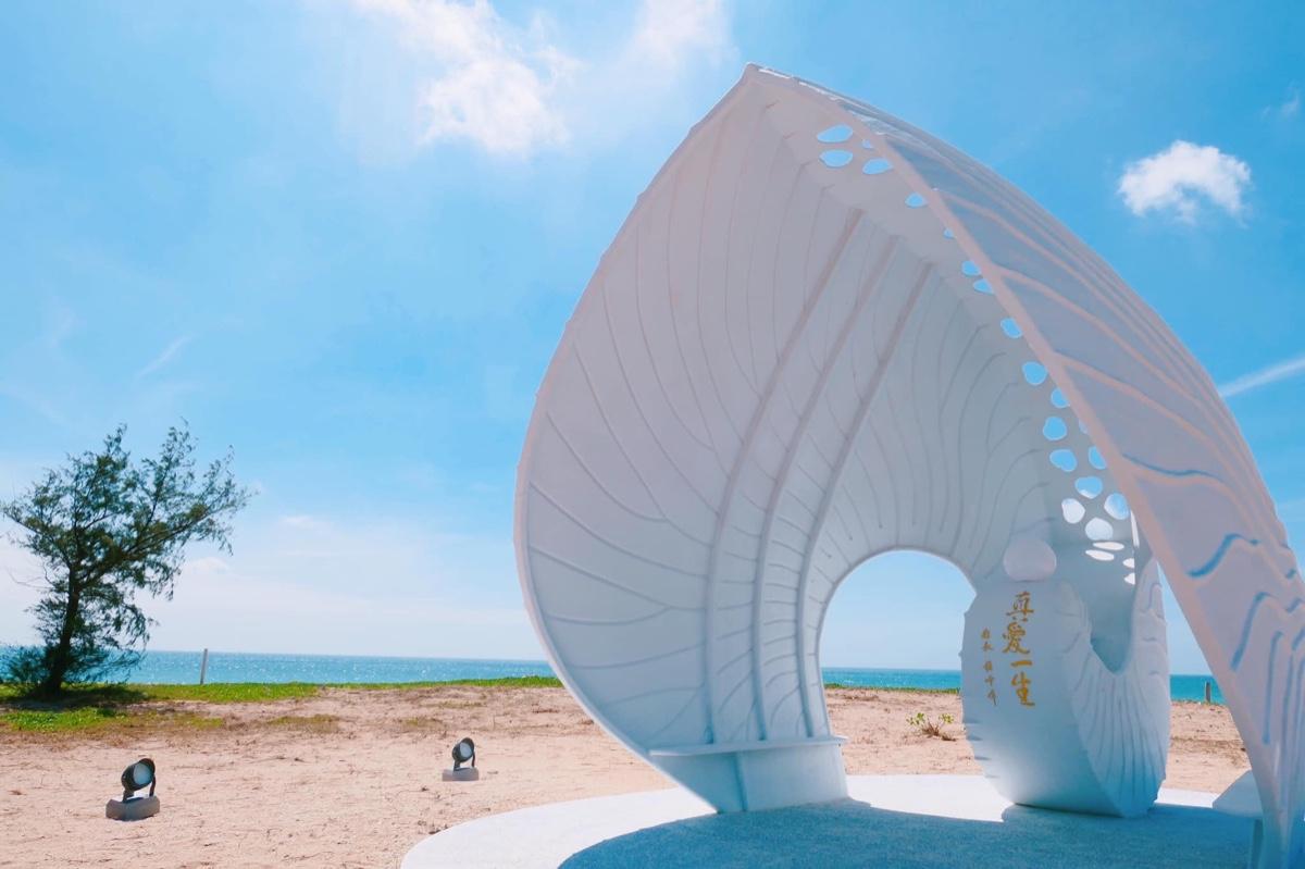 #貝殼教堂 座落在澎湖美麗沙灘 #林投沙灘 的海邊,純白貝身搭配金白細沙、與碧海藍天相襯、馬鞍藤花隨風搖曳、怎麼拍都成幅畫。這個貝殼教堂於去年9/28縣府舉辦浪漫海灣婚禮後,將長期駐留在這、供旅人路此拍照📷下次來澎湖的你,記得到此留下倩影喔🙋