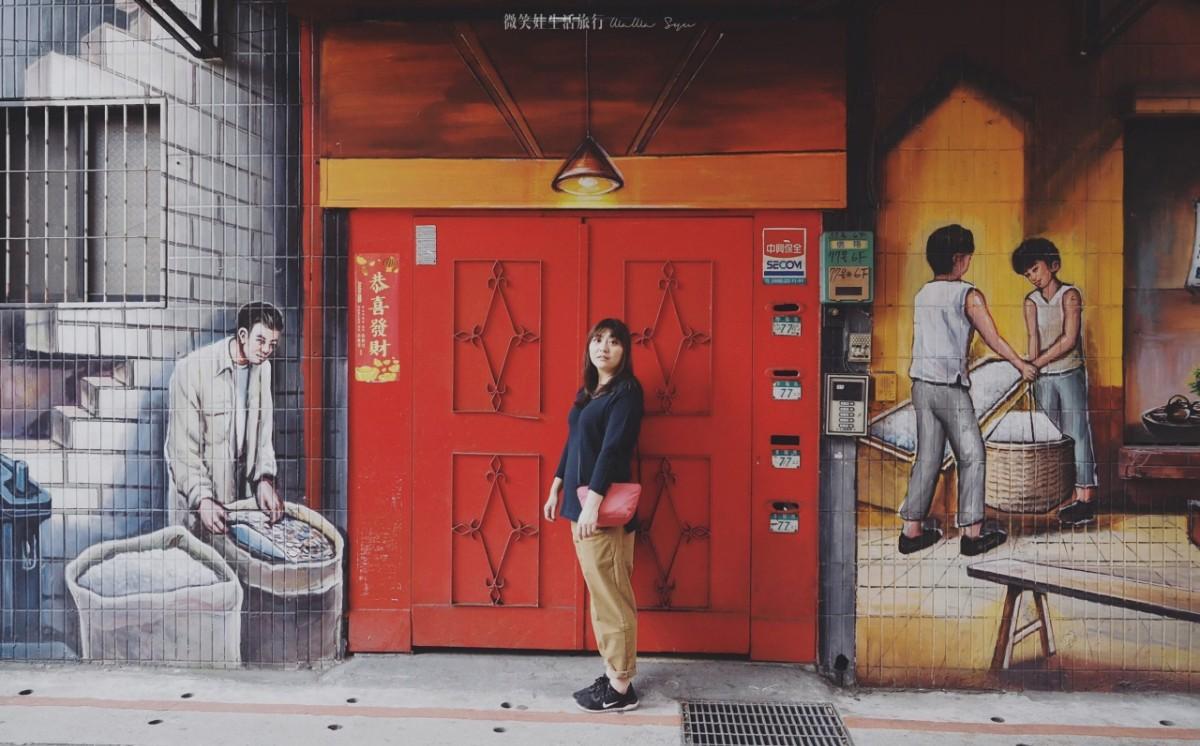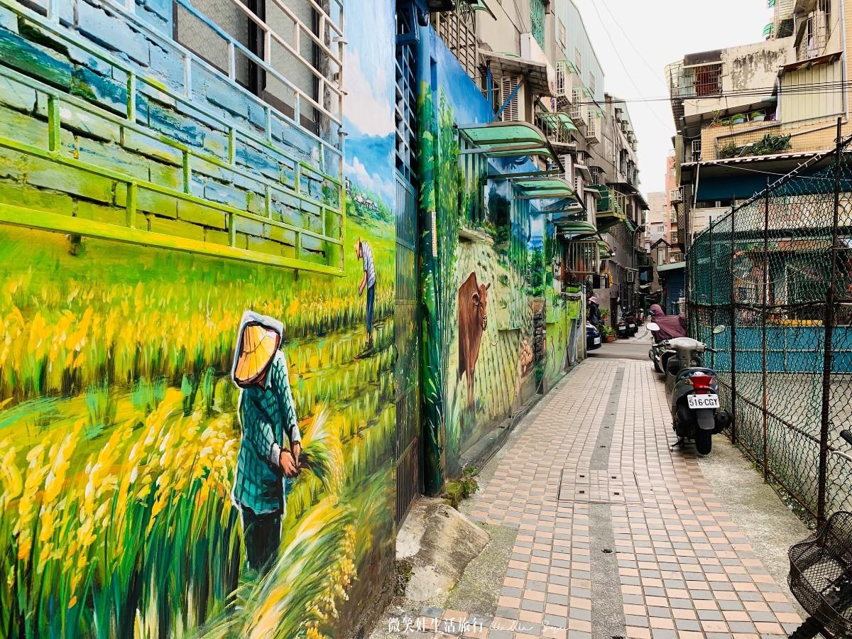 從這個入口會先看到傳統製鼓藝術繪畫,主要是新莊當地不得不說的百年歷史「响仁和鐘鼓廠」更是新莊人的驕傲,從第一代創始人王桂枝(阿塗師)於民國13年創立到傳承給兒子王錫坤師傅,將享譽國內外,因此不少人想到新莊就會聯想到這傳承近百年的製鼓達人,王師傅也是傳承家裡的好手藝更是有高要求高品質,因此讓台灣的製鼓在他手上繼續傳承,而新莊正是他的家鄉,當然以新莊為主題的彩繪絕不能少掉這一環,而彩繪大師紀雲煙大師更是將牆面融會整個社區的大門、石頭、電線杆等原有的素材加以融合,讓畫面看起來非常協調,一度讓我遺忘這一幅幅繪畫的背後都還住著市井小民,而裡面也還有他們家家戶戶的各自的故事正在上演。