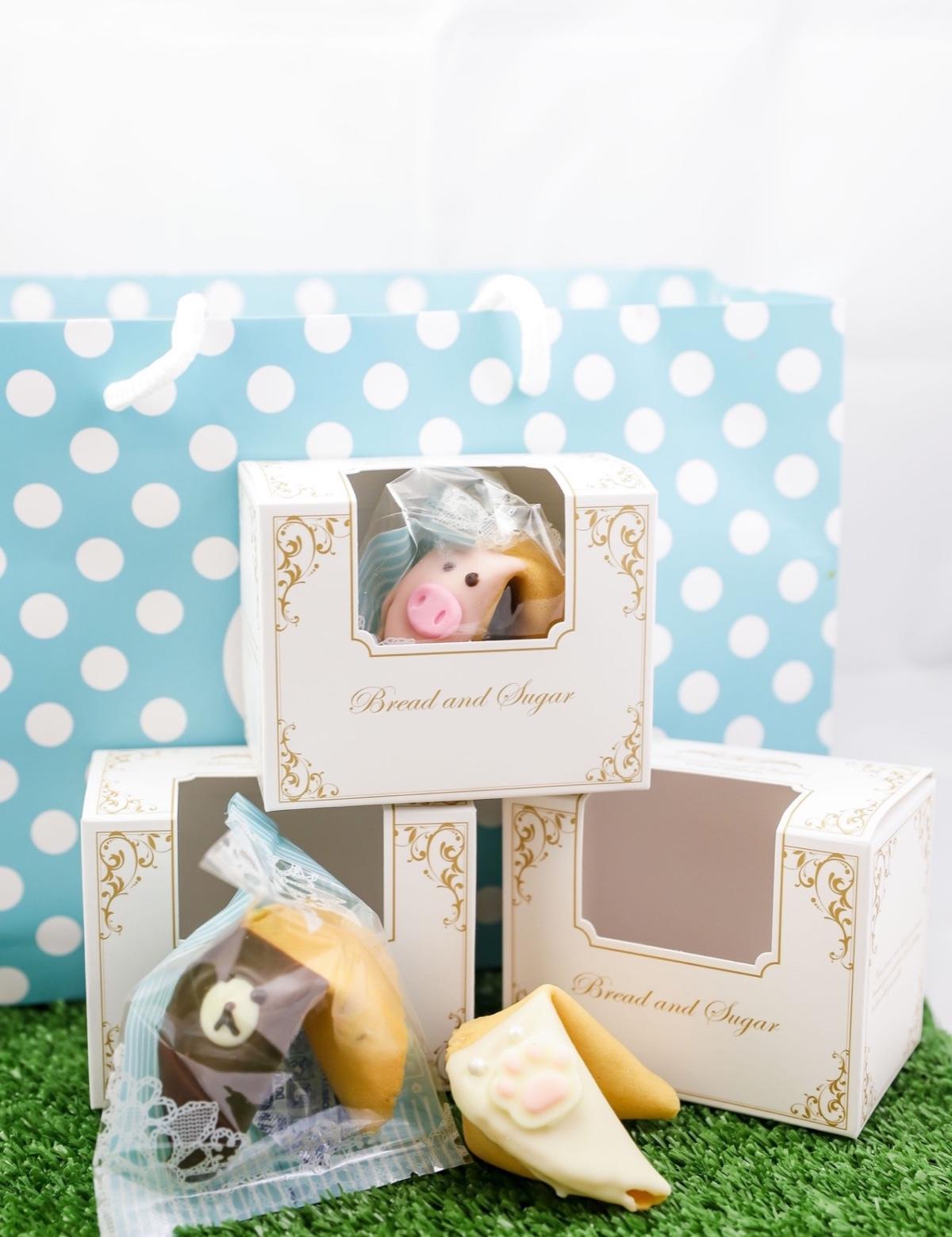 🐶還有可愛版幸運籤餅👉柯基屁屁、小熊、柴犬屁屁、小豬⋯等,只要妳想的到的可愛圖案都可以做👉不只【籤餅客製化】還有【籤紙客製化】不敢說的話都可以寫在籤紙裡,想對親人、愛人、朋友說不出心裡的話嗎?別擔心👋還有多種籤文可參考
