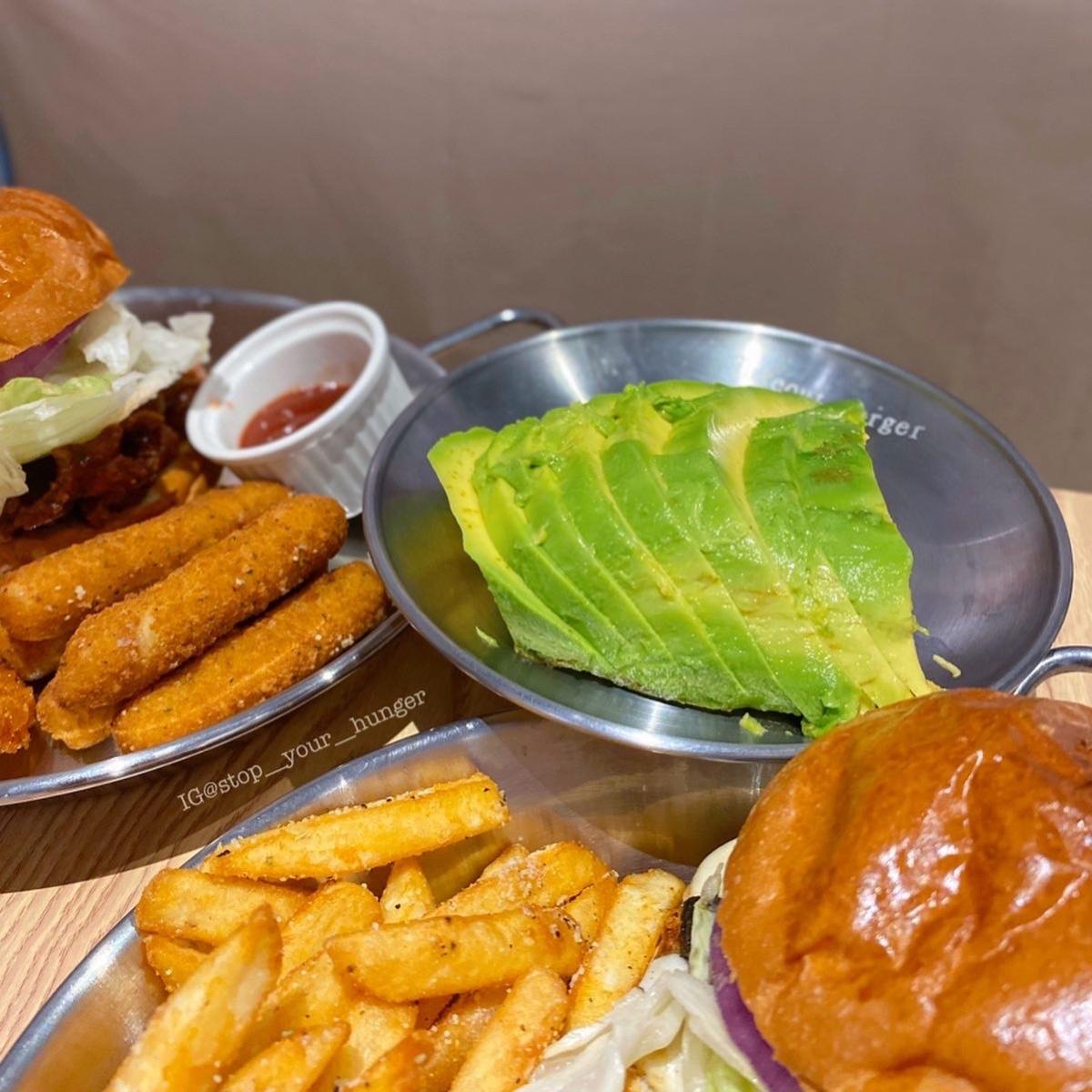 然後然後原本只是單純想吃酪梨就點了加料區,沒想到上桌這個酪梨也太大一盤了吧!❤️比我們預期中的多很多!多到沒辦法一次全部夾進去漢堡裡,這個很可以👌