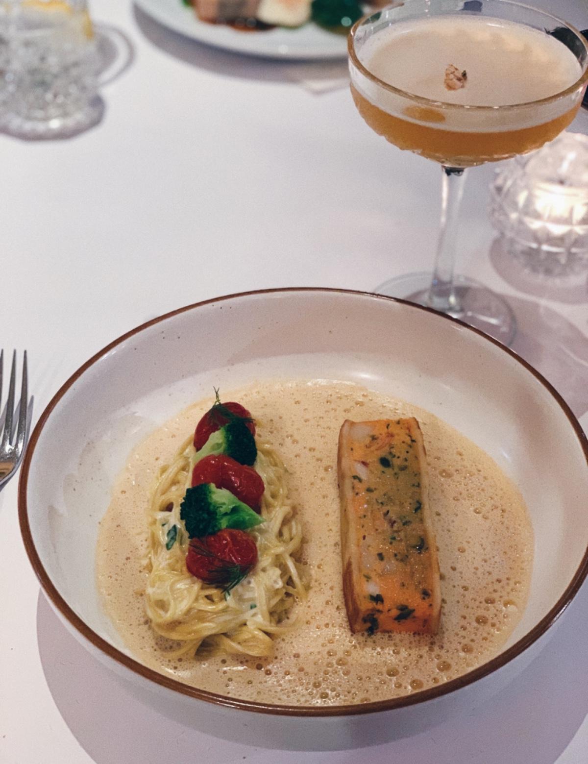 圖六七 主餐- 我覺得沒有到很驚艷 不知道是不是平安夜的關係 太多人了 醬汁有點膩我的那個麵 是黏在一起的 自己很不喜歡這樣