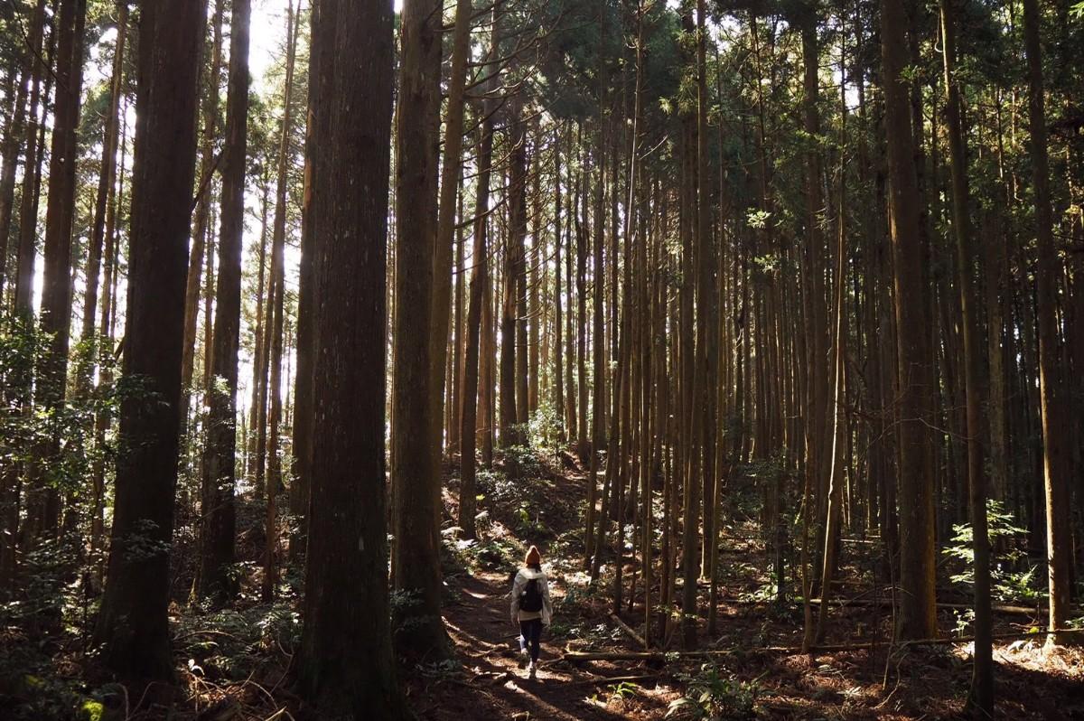 忘了走了多久,你會看見整片的杉木林,