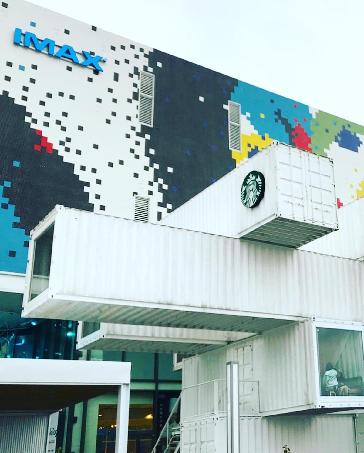 人人必訪的#花蓮景點 星巴克貨櫃屋門市,位在新建好的購物中心新天堂樂園門口旁邊,整間星巴克擠滿人潮的密集度還比旁邊的洄瀾灣新天堂樂園購物中心整棟的人潮多,很奇妙!!