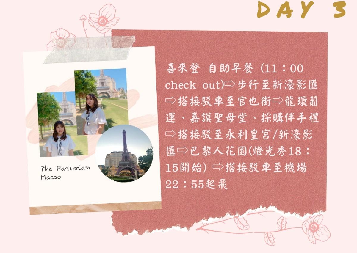 今天來分享之前至澳門三天兩夜的行程