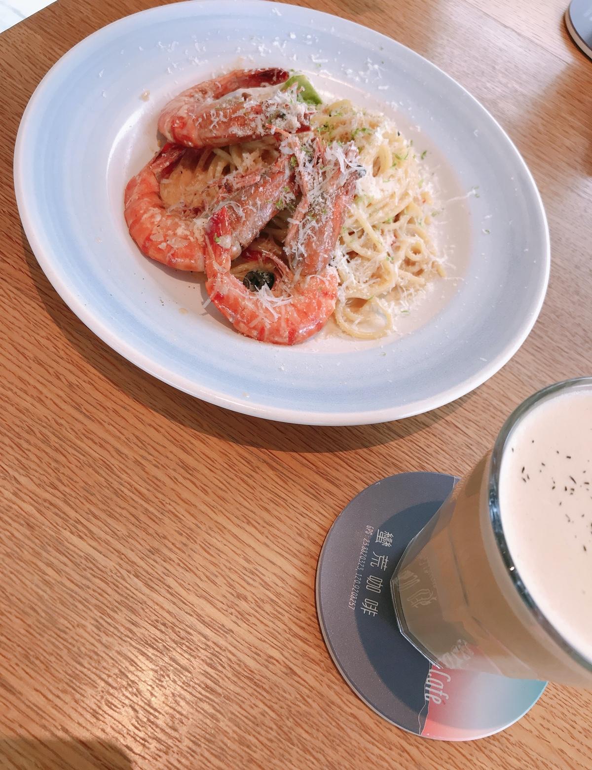 🐷海港萊姆鮮蝦義大利麵➕日月潭紅茶鮮奶茶