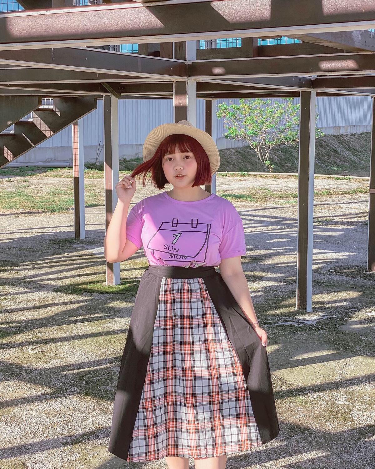 手繪日曆📅上衣設計超Q,穿起來很透氣舒適!而下面這件復古格紋拼接裙👗剪裁真的很特別呈現出一種時尚感~
