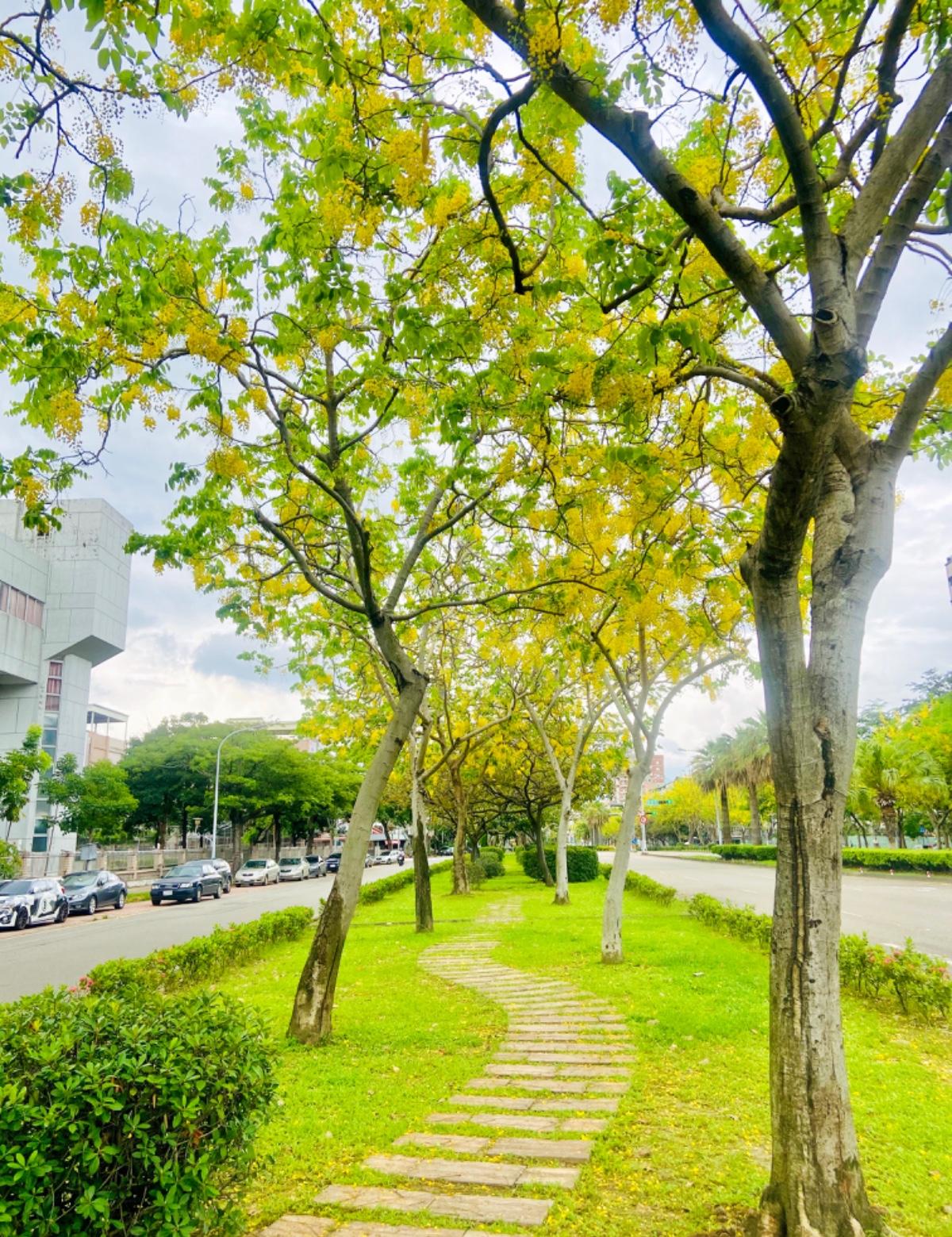 過馬路時走往停車處意外發現這條阿勃勒小徑,立馬叫佑佑先生幫我拍了幾張,