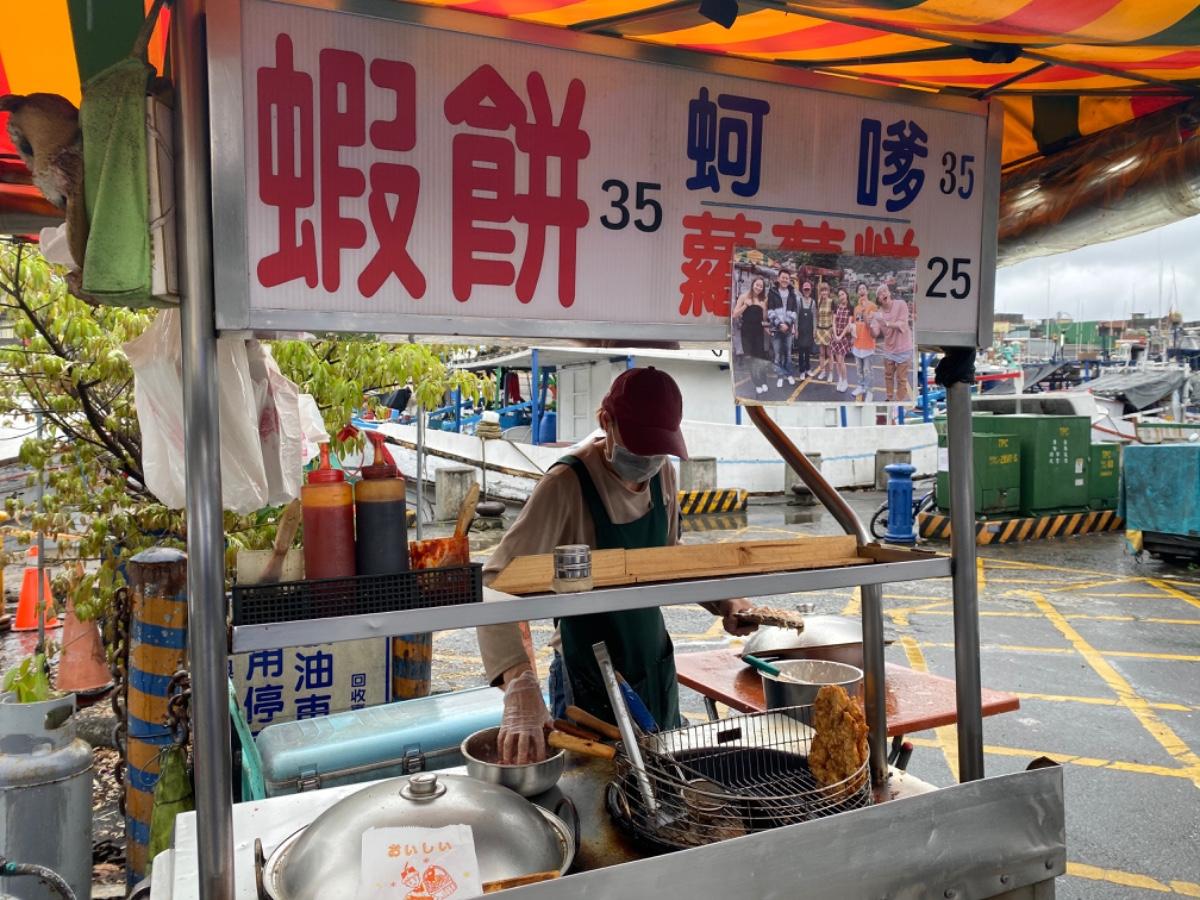 宜蘭蘇澳的港口路旁,有一家蝦餅店,總是大排長榮,主賣蝦餅、蚵嗲、蘿蔔糕。