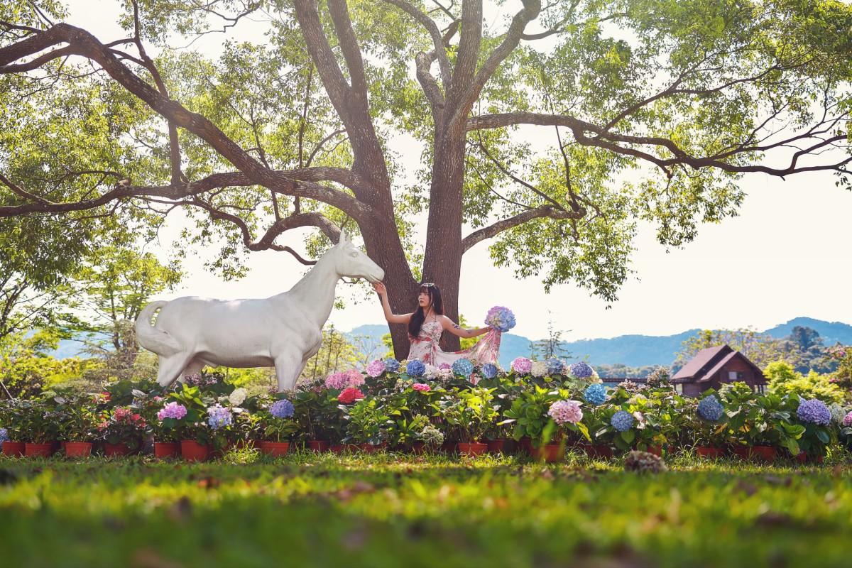 夏天有繡球花,冬天有落雨松,園區到處有浪漫好拍的裝置藝術
