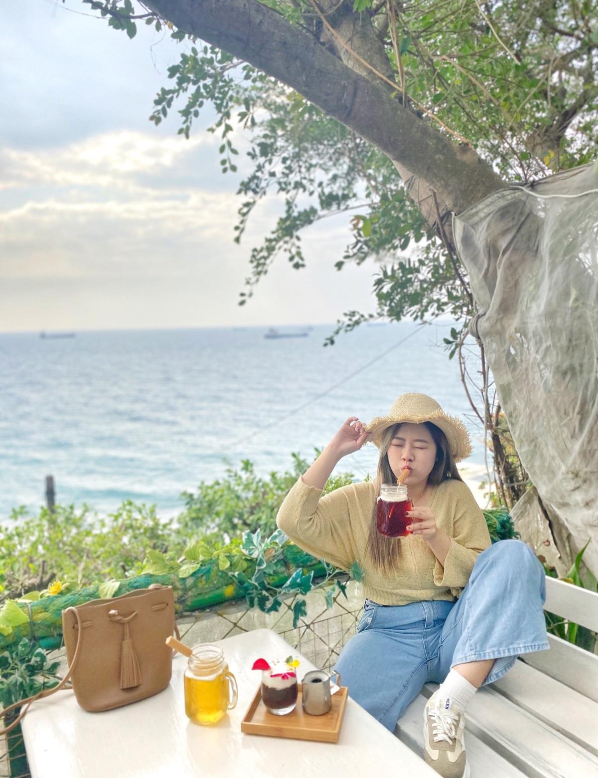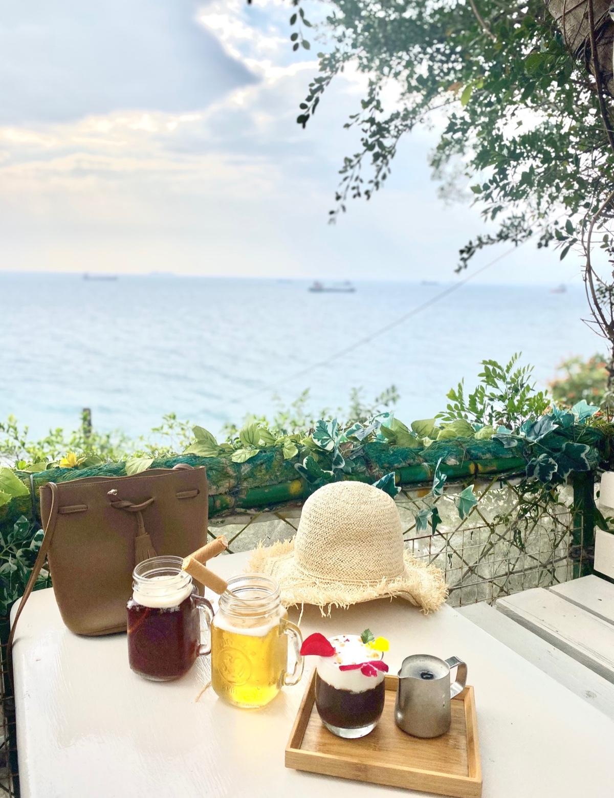 看著山海風景吹著海風喝著飲料