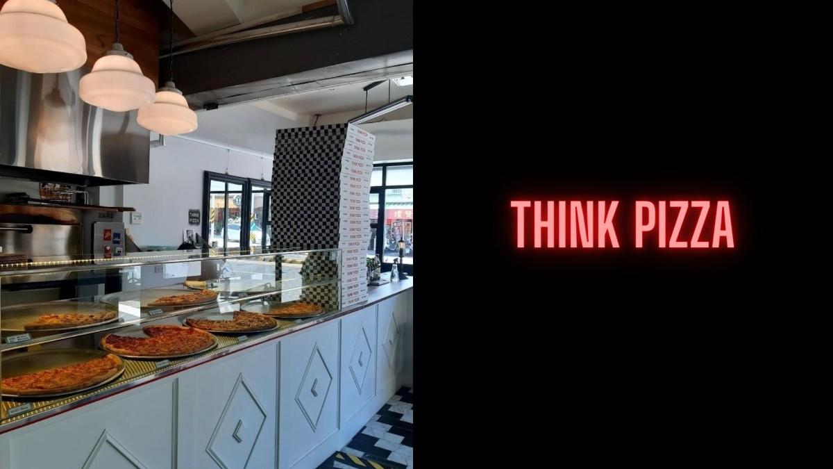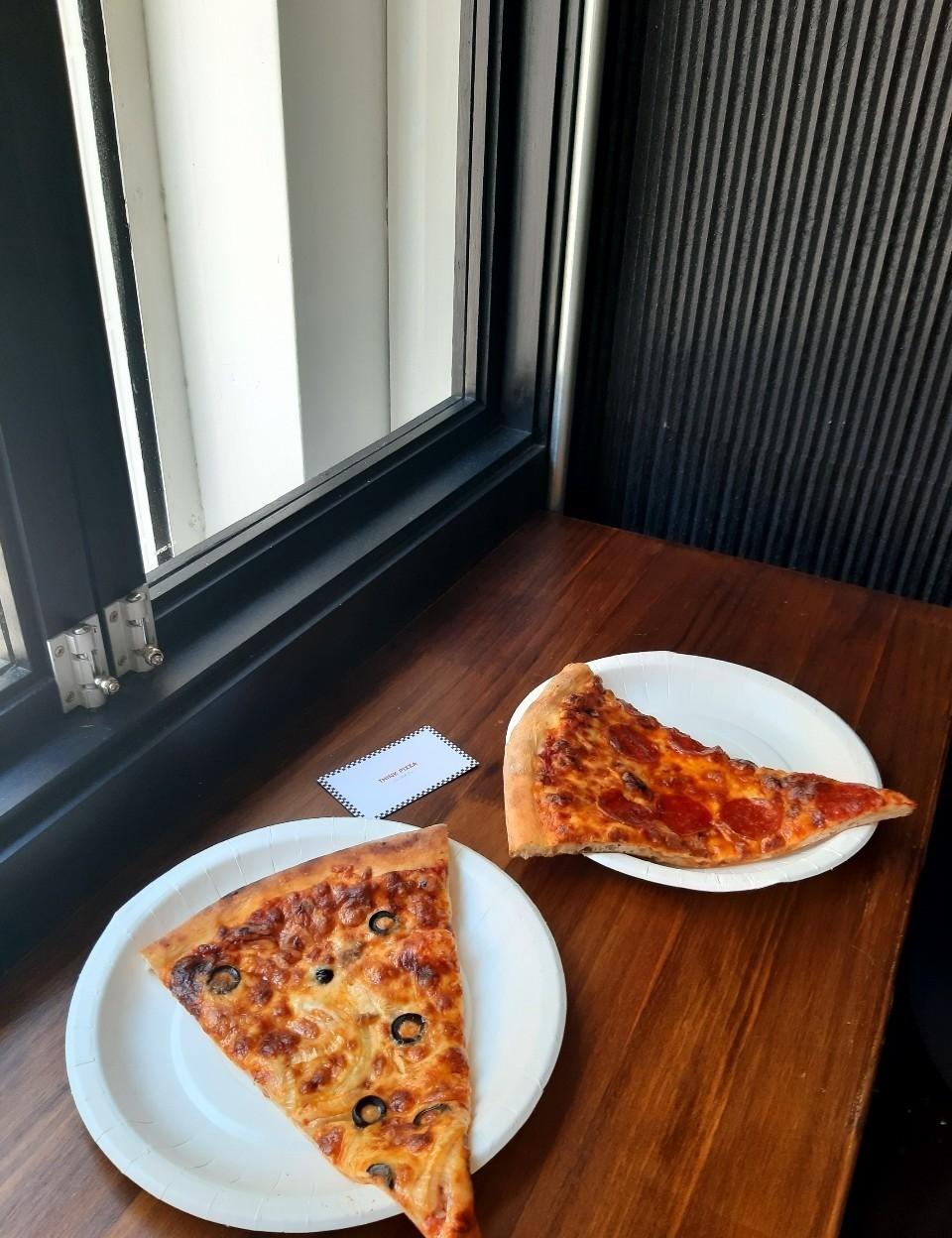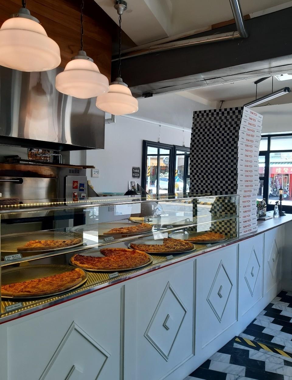 從店門外的窗戶反射就能看到裡面thinkpizza的logo盒子❤️