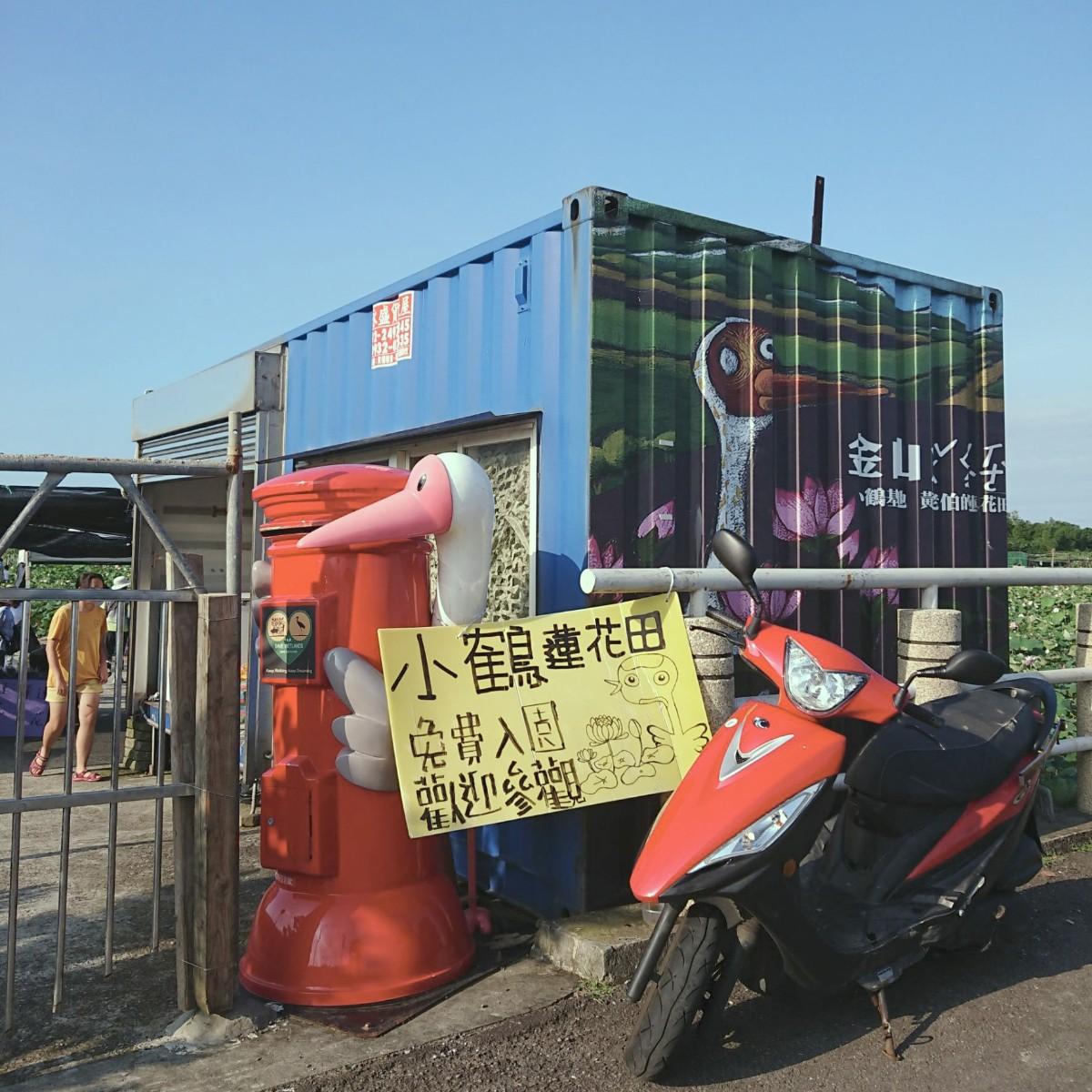 這個地方還有個很長的名稱叫「小鶴基地黃老伯的蓮花田」可以看到附近有紅色大郵筒裝置藝術就是特地為這景點打造的,因為盛放的天氣總是很熱,所以可以看到附近有規劃賣清涼蓮花凍點心的小攤販,一旁還可以看到現採下來正在製作加工的蓮花們