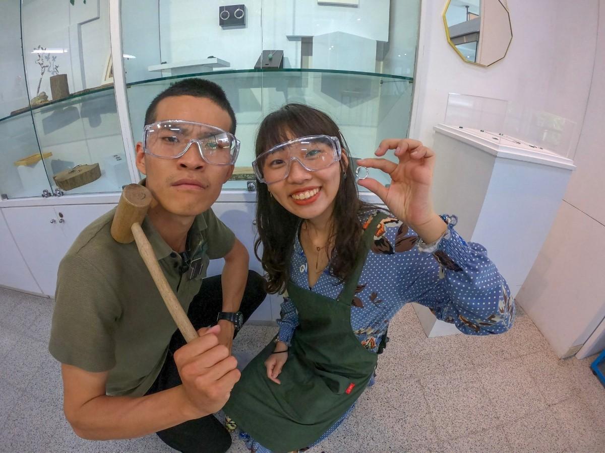 整個金工的製作過程很有趣,師傅邊講解銀飾的構造,我一邊動手加熱軟化,雖然用噴槍真的有點怕怕的,但師傅們會在旁邊緩和氣氛,時時刻刻關心安全。