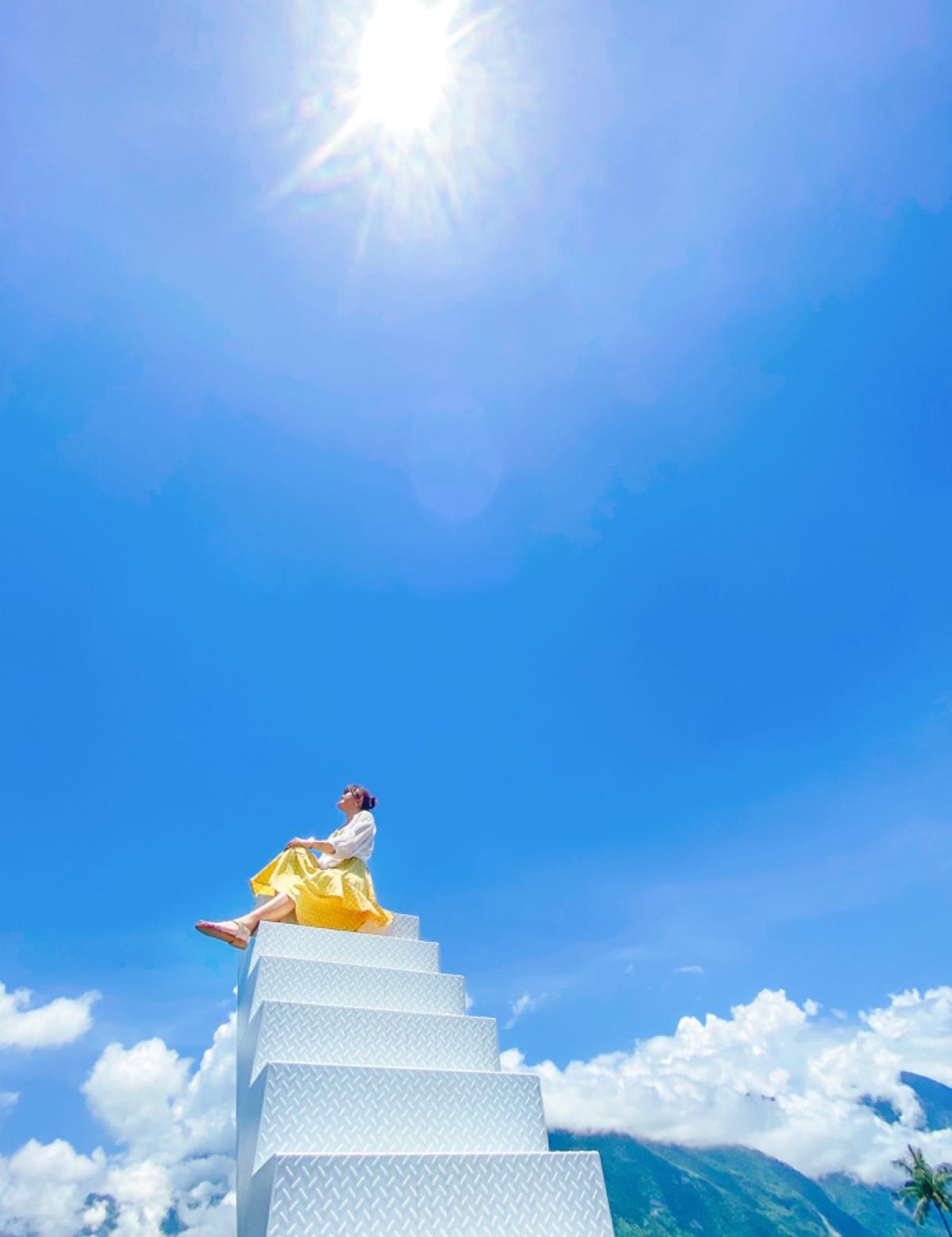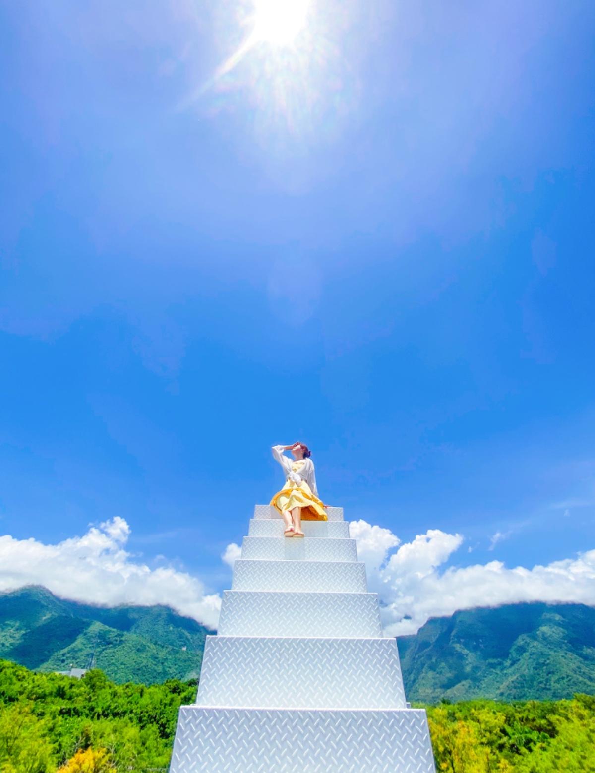 終於讓我可以好山好水的花蓮拍到「天空階梯」了,而且只要於咖啡廳內消費120元/人,簽個切結書後就能登上階梯拍攝美照了。