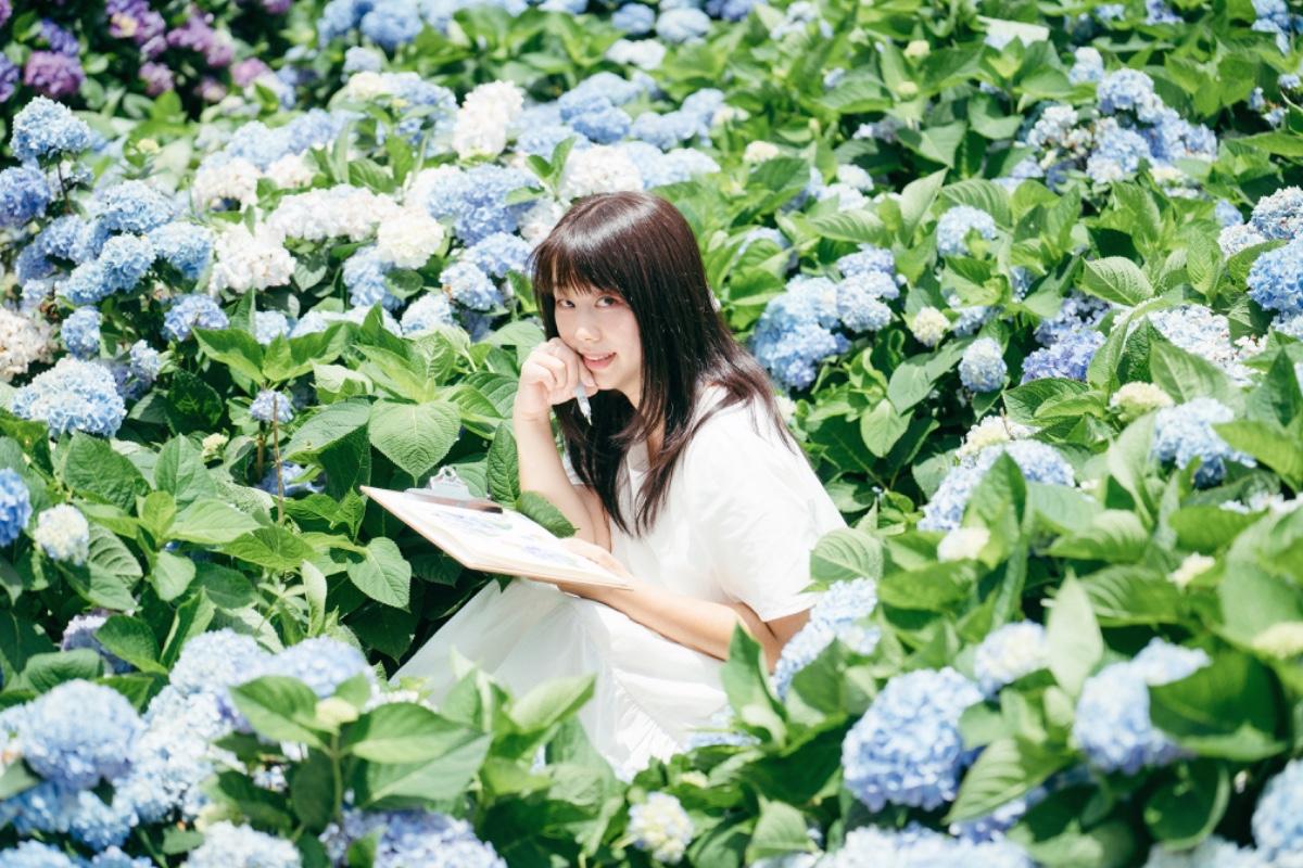 一直很想拍在花園裡畫圖的照片,終於趁著繡球花季,記錄下自己的樣子,雖然自拍和帶個會拍照的親友能就能得到好照片了