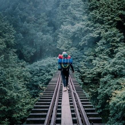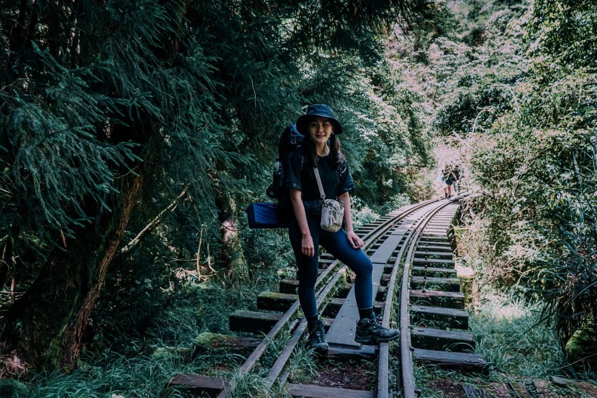 到了鐵道部份,不得不說,在這樣的高度下,左右沒有護欄,還要習慣在重裝下移動腳部的重心,腳真的好軟阿!爬文時有看到會怕的人建議可以攜帶登山杖輔助,雖然懼高到爆炸的我也帶了登山杖,但完全沒有用到XD (其實慢慢走就可以啦)