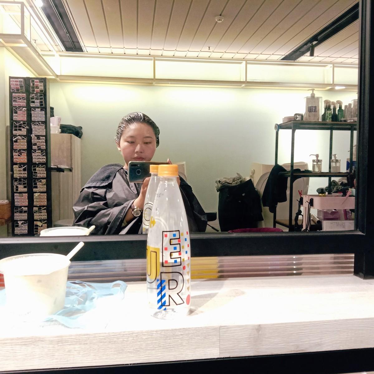 再來是我的重頭戲:染頭髮,它位於捷運和百貨公司的連接處,會選它除了價格優惠,染劑是用日本有機的產品,店內還真的有日本設計師正和日本客人溝通,聽我的設計師說:他只會講日文、英文和一點點的中文,有時需透過翻譯和客人溝通,其實我還滿想讓他操刀,想知道日本設計師的手法跟臺灣的區別?我也詢問了日本染劑和一般髮廊使用的染劑有什麼不同?設計師告訴我:日本染劑顏色比較霧面,一般髮廊大部分使用歐美的染劑顏色顯現比較亮面。