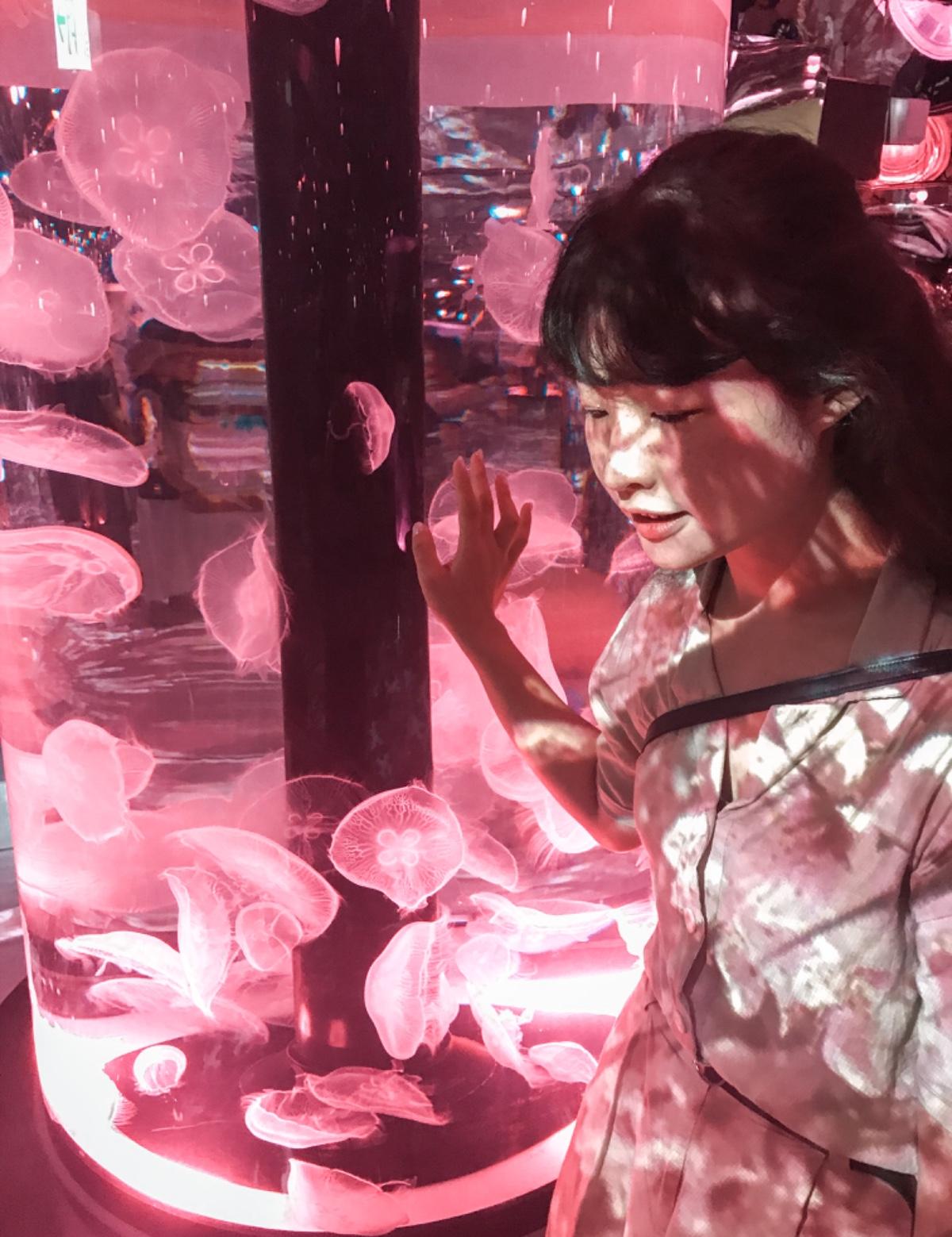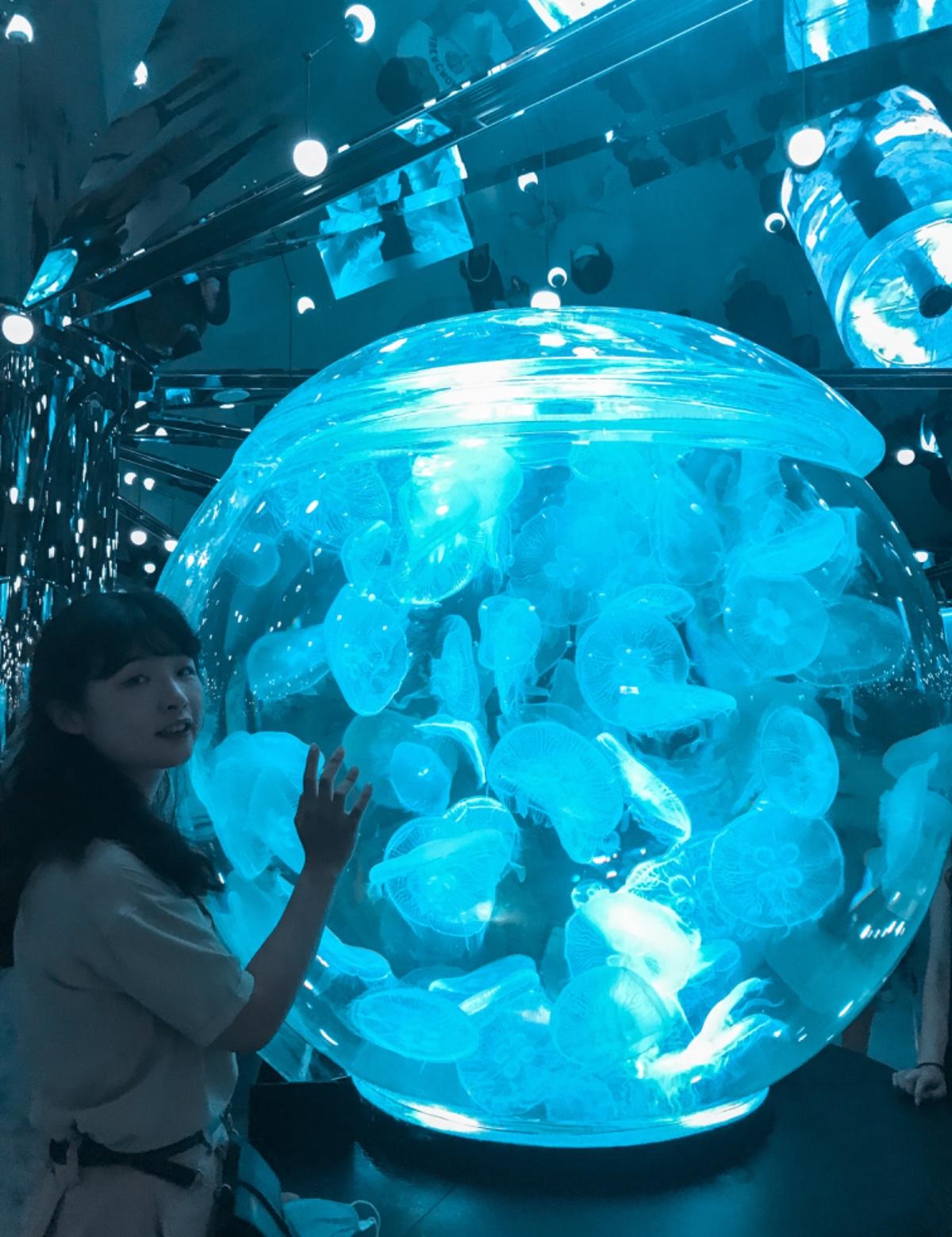 最外面那個會轉動的月亮水母展示窗拍照隊伍不曾斷過⋯⋯所以要拍就排吧!