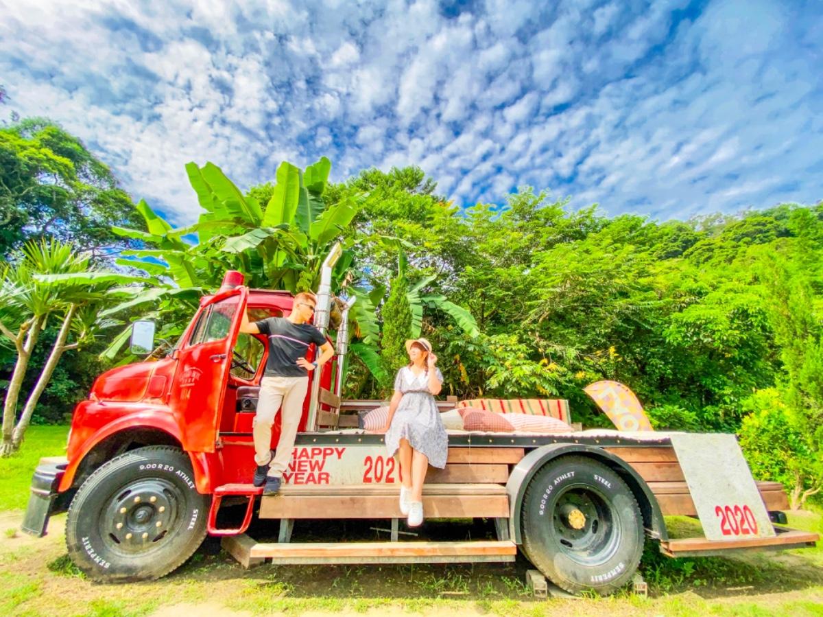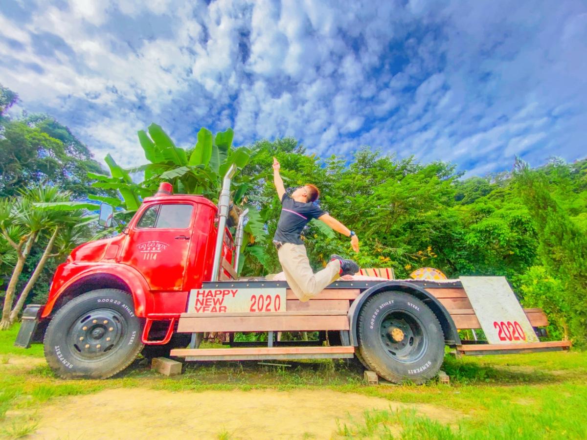 很霸氣的賓士美式復古餐車真的好好拍,還跟佑佑先生玩起小推車~另外一旁紅色的大卡車也是好拍到不行,整個園區免費入場,好吃好玩好拍,還能遛寵物、聚會,真的好喜歡這地方❣️