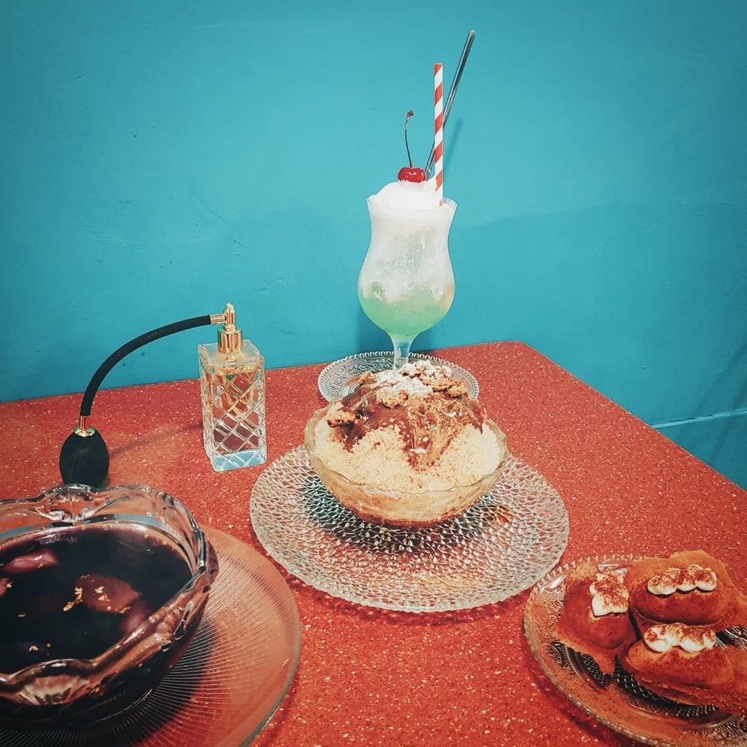 整面湖水綠牆加分的日式冰店 大推晴子冰室!! - (環境篇) - 店裡裝潢真的很可愛很日本 清新風格應該大家都會喜歡~ 牆上還有結衣老婆海報🤷 洗石子地板超級懷舊 有種回到2,30年前的老冰店感覺🍧 #晴子冰室 #harukoice #刨冰 #文青冰店 #復古冰室 #江子翠美食 #板橋美食 #喫茶店
