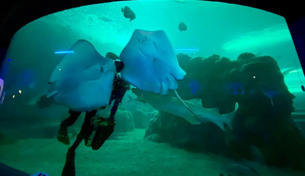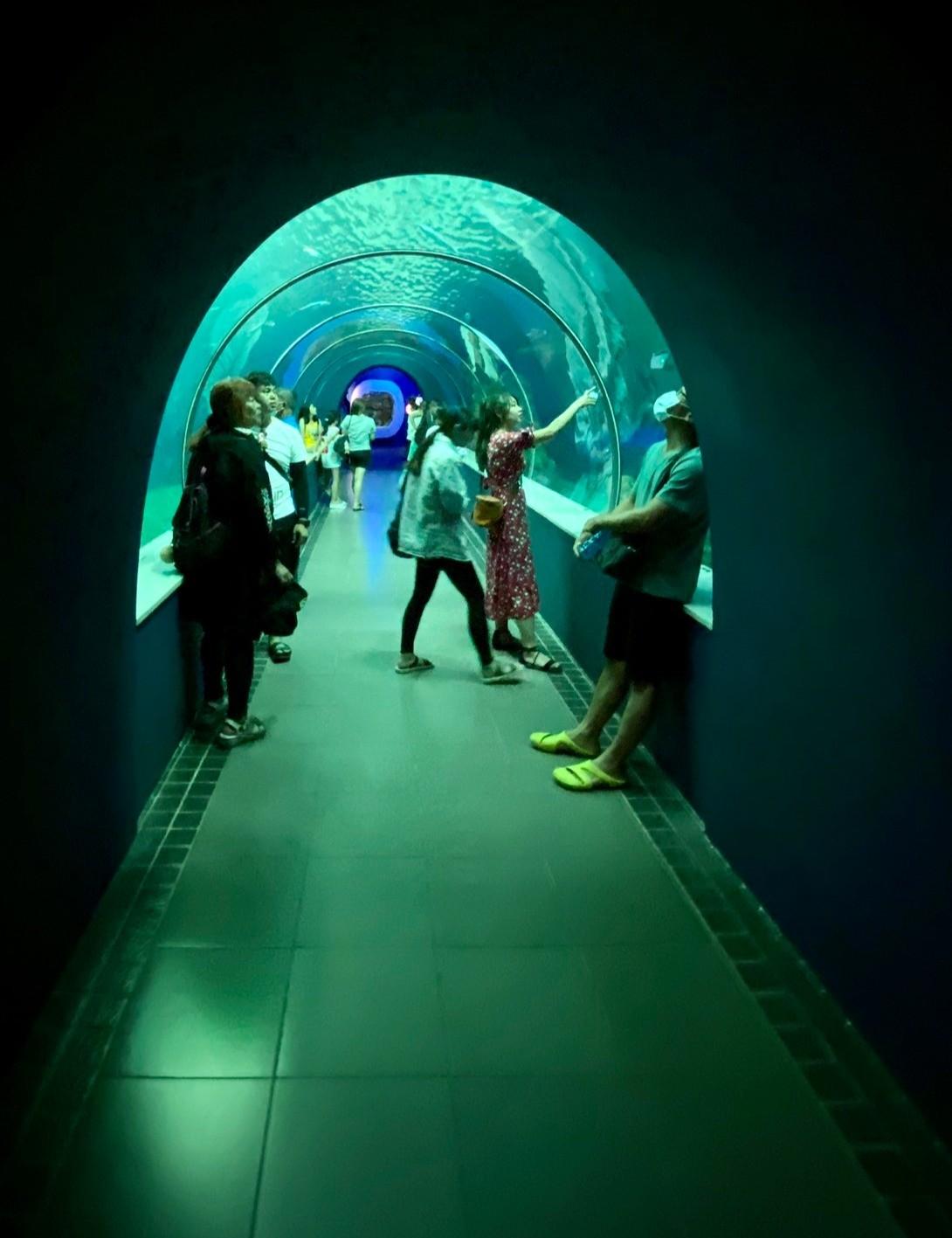 這裡也有水中隧道,可以看到各種魚游來游去。