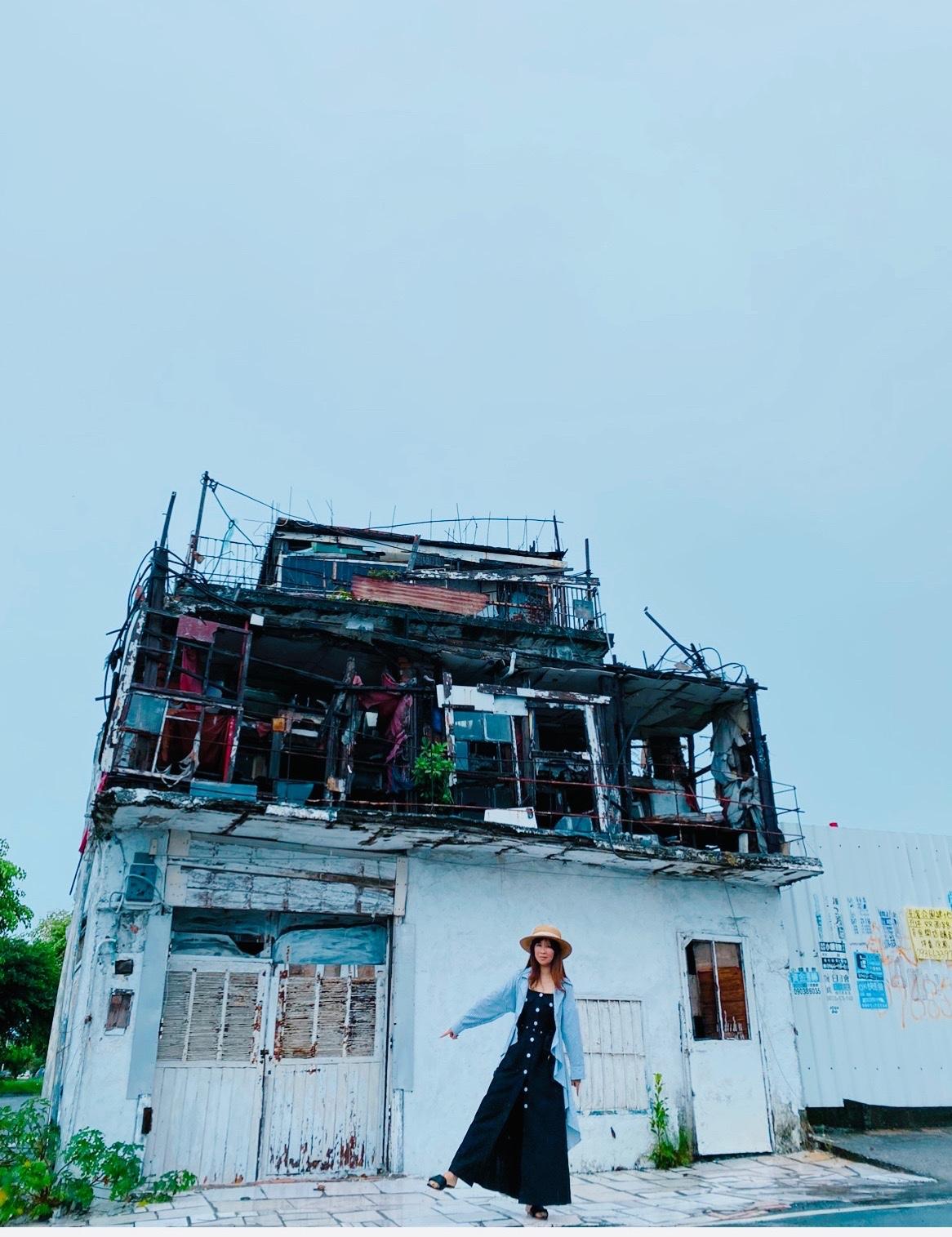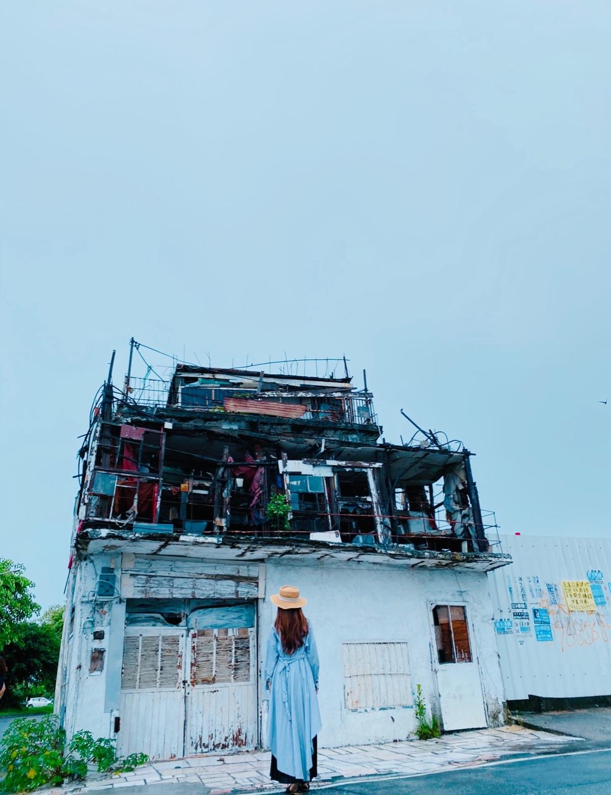 阿伯檢廢木.廢磚.廢瓦...慢慢蓋的