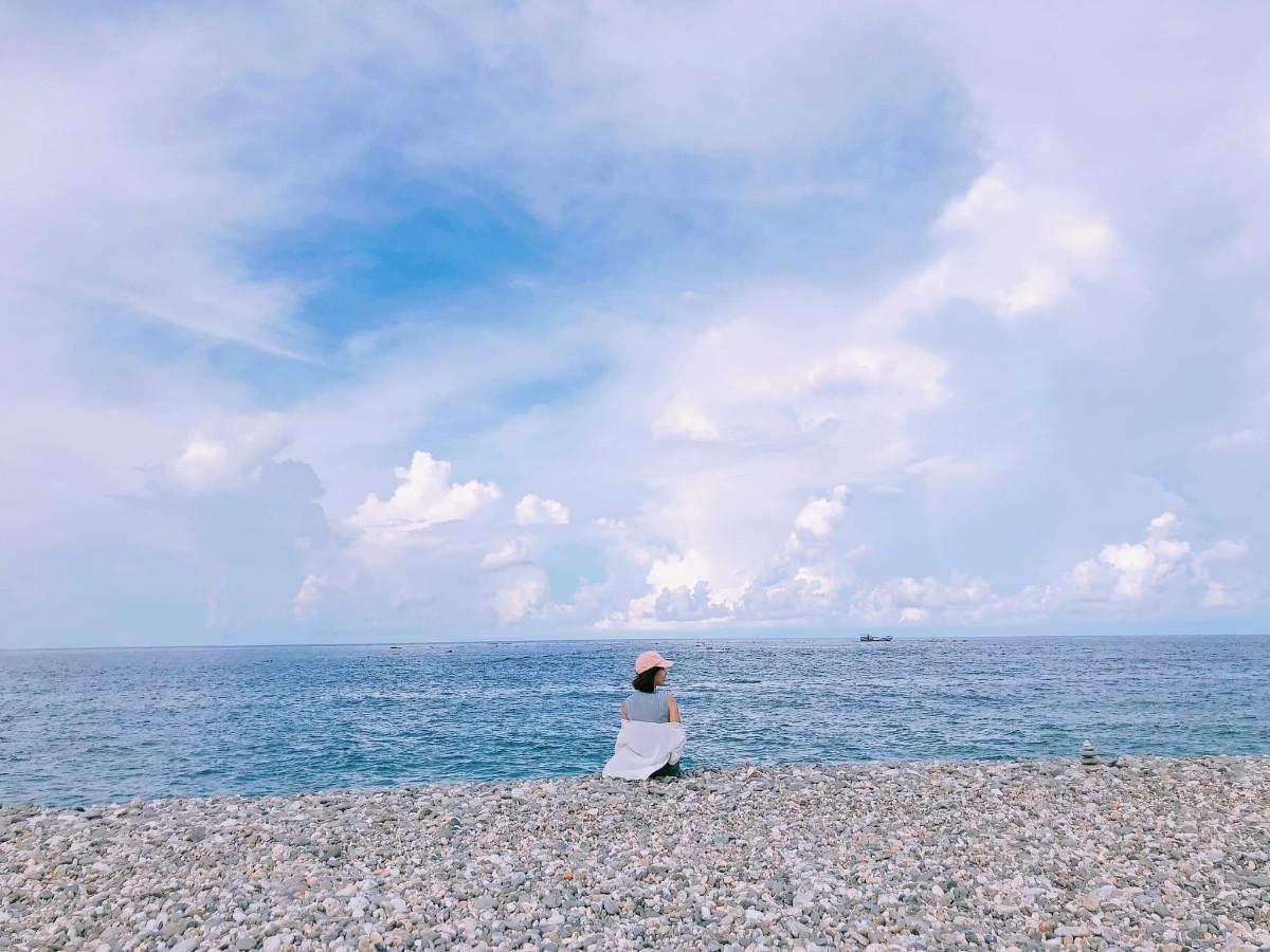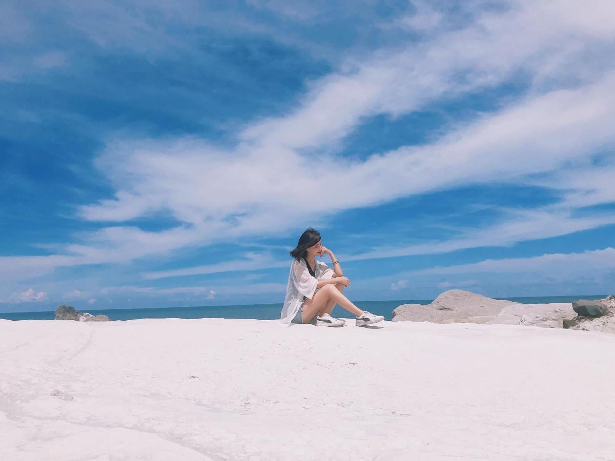純白岩石和藍天白雲、蔚藍海洋搭配起來,真的是極美配色,怎麼拍怎麼美✨