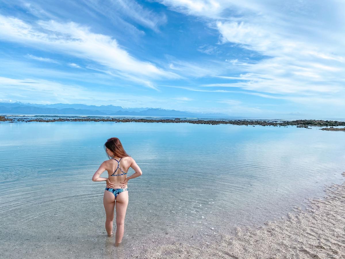 起了個大早只為了拍漂亮的空景🌊那個畫面太美走下去真的只有breathtaking這個詞可以形容👁️人生第一次穿小丁獻給 @mataswimwear 👙雖然ㄋㄞˇㄋㄧㄡˋ了一整天但其實是滿好看的☺️喜翻💓
