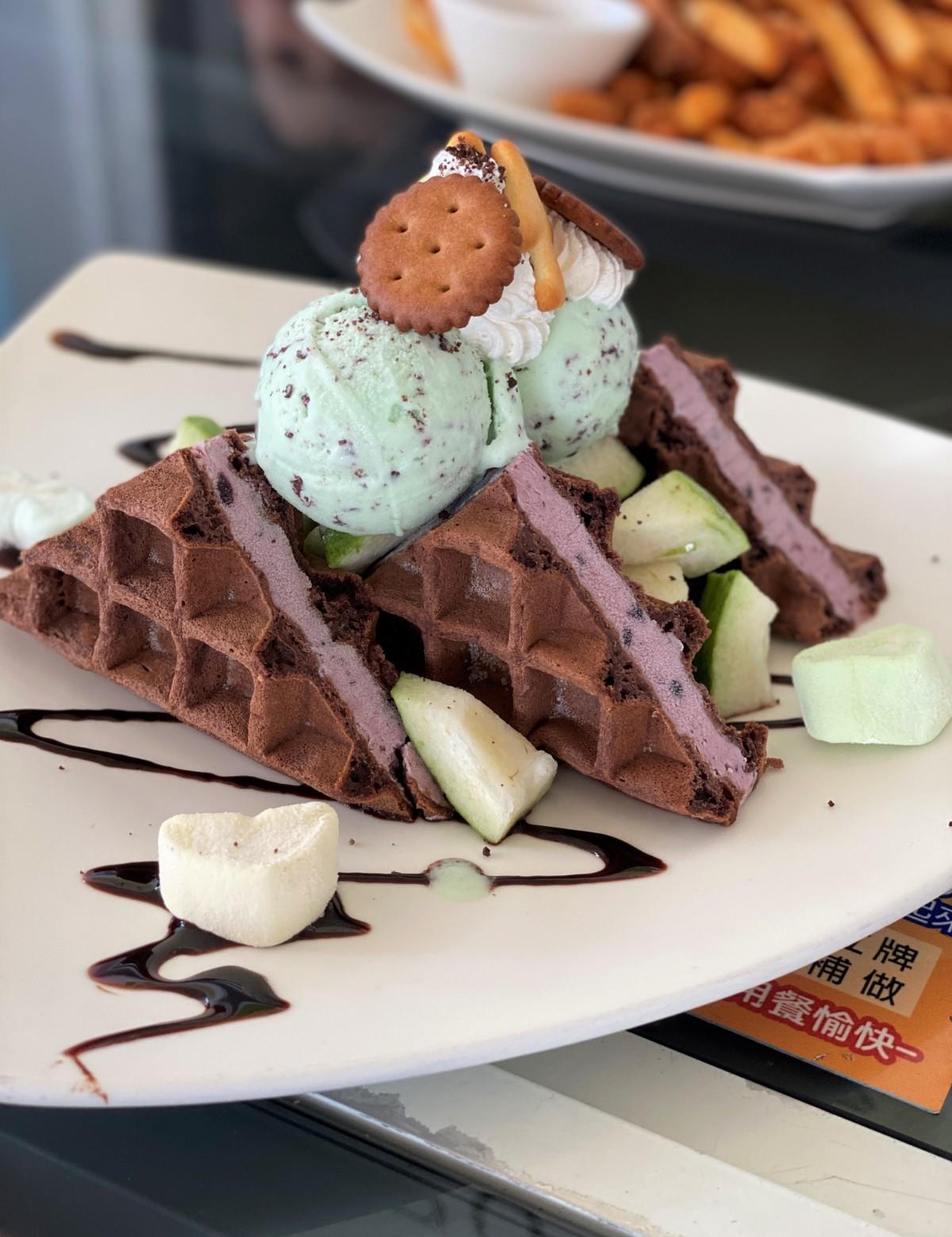 家人覺得冰淇淋鬆餅的香精味太重,咖啡普通,炸物拼盤還OK。