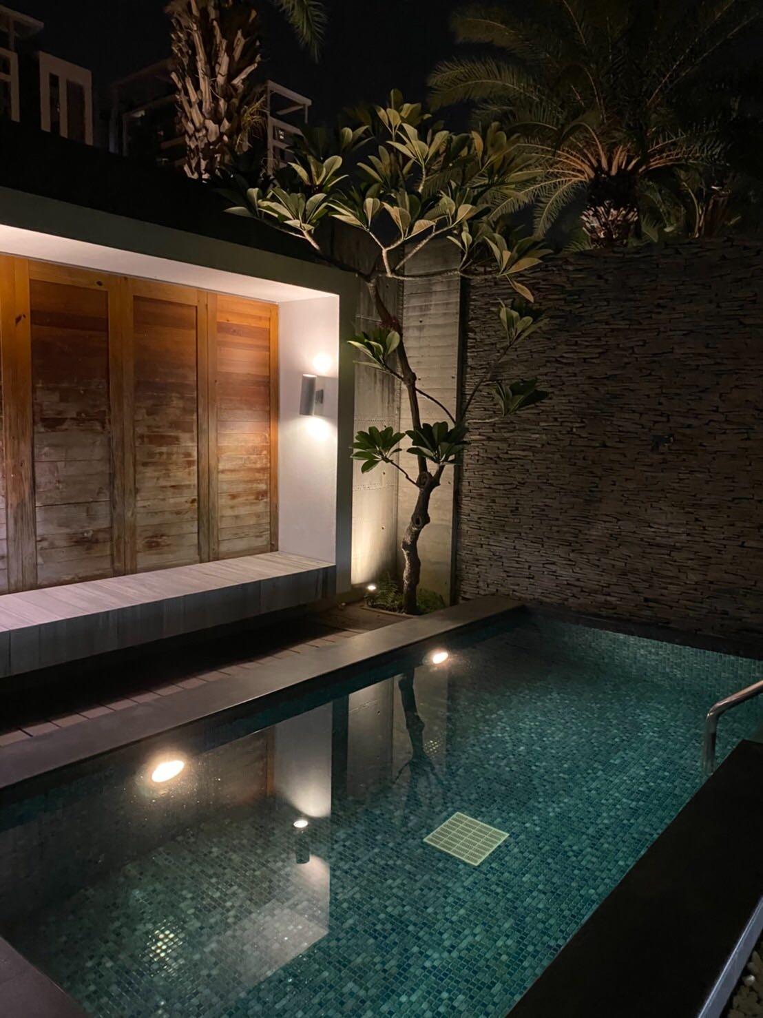清水模建築搭配峇里島風格的Villa套房與私人露天泳池,