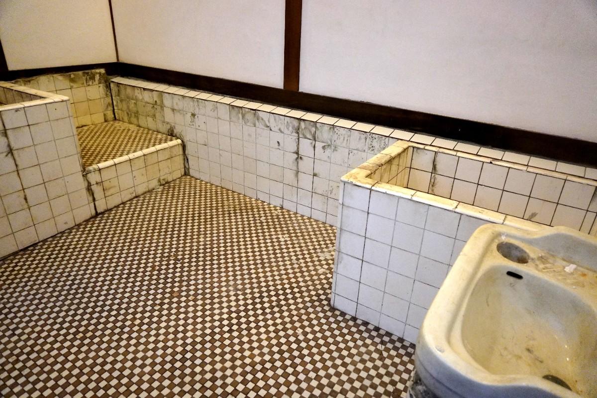 百坪面積,右側是一處美麗庭園,碎花磚鋪設的幾何造型水塘,見證過往的奢華精彩。