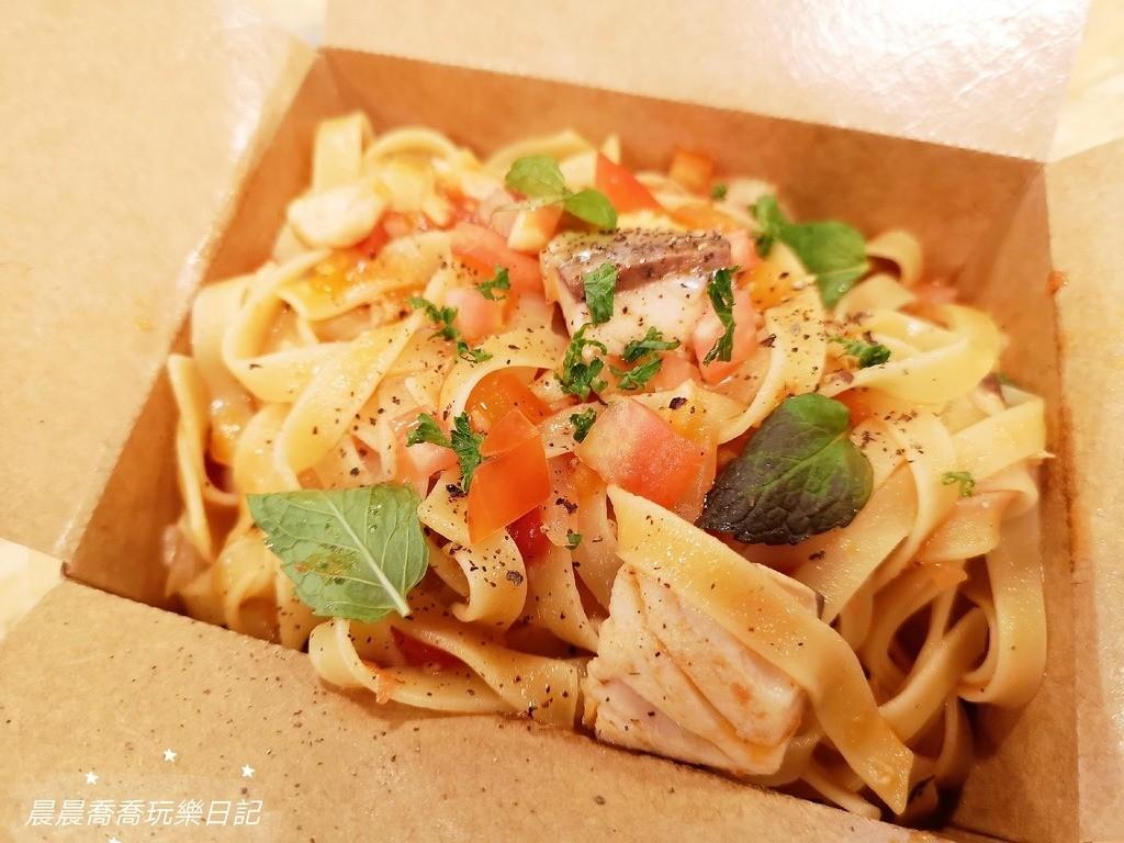 還點了一份「茄汁鯖魚寬扁麵」,酸甜開胃的茄汁加上鯖魚海味濃郁好吃,主廚不手軟地加了好多鯖魚塊,份量十足而且超好吃!!會想要外帶一份回家!