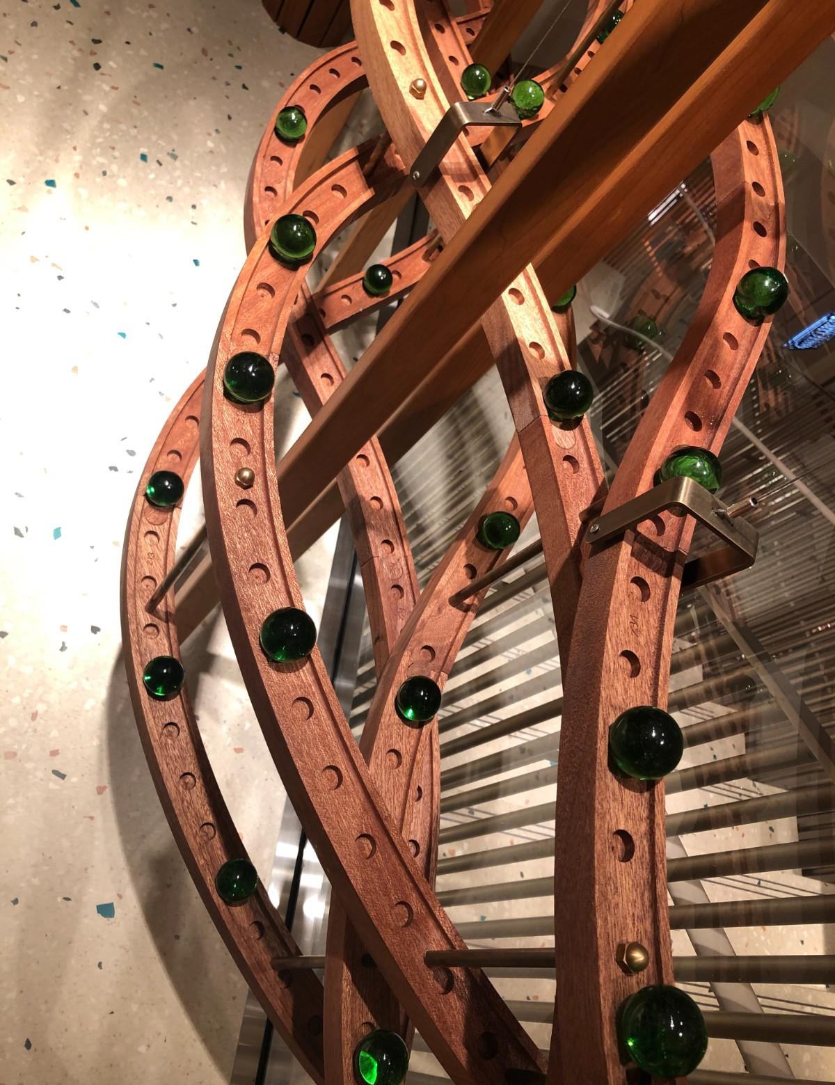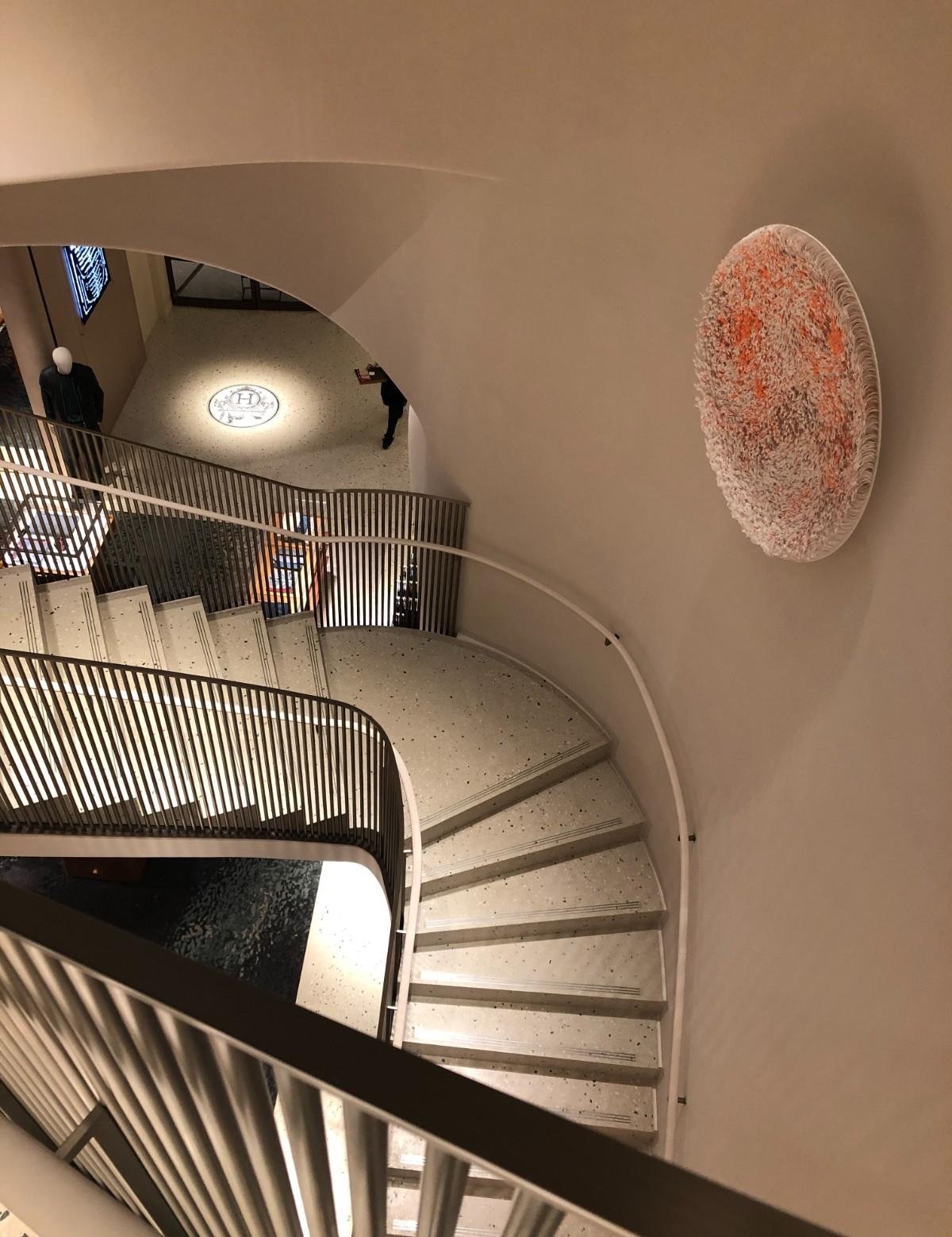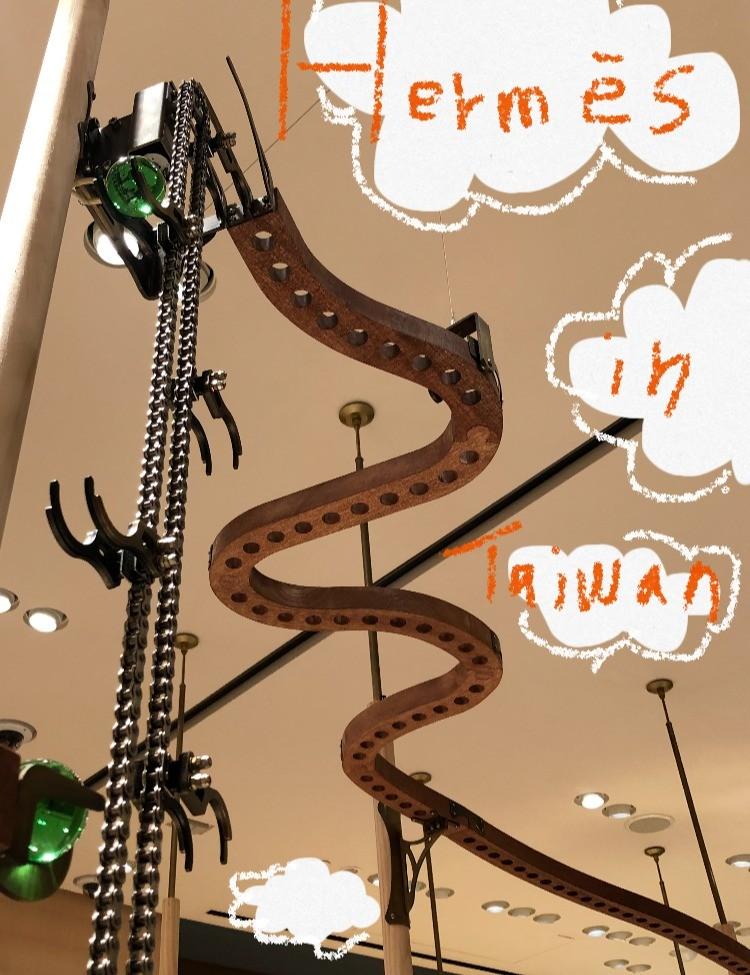 踏進BELLAVITA的愛馬仕店裡,看到了富有童趣的機械藝術裝置,清澈的玻璃珠滾動在店裡的空中,運作的模式像是目睹縮小版樂園在眼前一樣,穿梭在店裡咻!冬!的一聲,哈哈,可能是某顆珠子因為煞車不及飛出了軌道,這時我跟另一個客人對眼互看,店員立馬說:『沒關係,我來撿就好。』店裡的客人:『笑。』