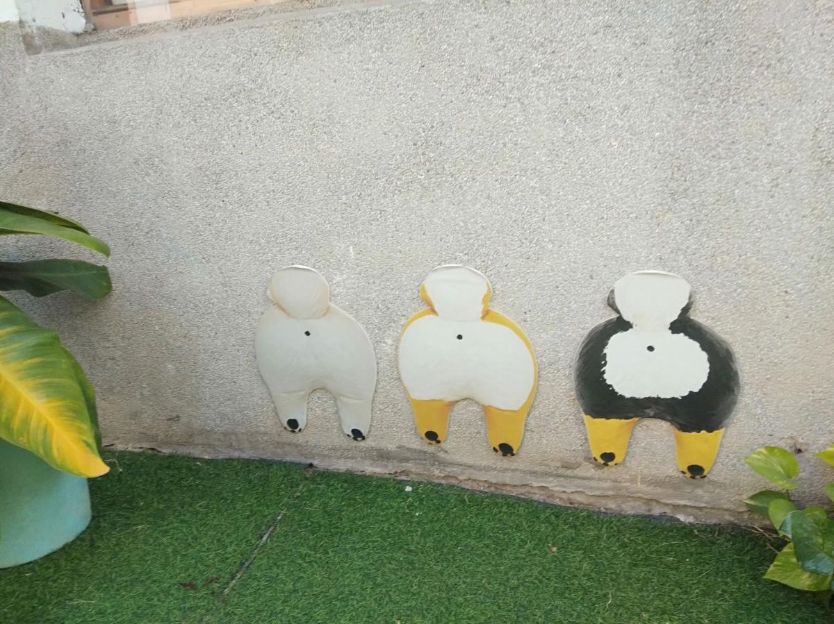 旅禾泡芙之家審計旗艦店,門口處有泡芙安全帽和三輪車、大樹下的摩艾像,每個人經過都會停下腳步看一看。