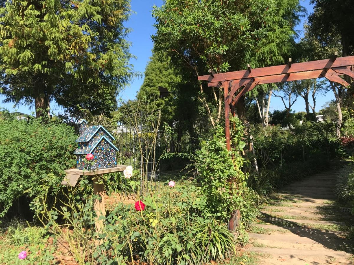 沒想到走進去真令人眼睛一亮!很用心經營的一座美麗花園啊!玫瑰、多肉植物、各式花草、造景佈置,彷彿置身國外度假勝地般,心裡盪漾著莫名的雀躍,加上老天賞給我難得的藍天白雲,真是開心!!