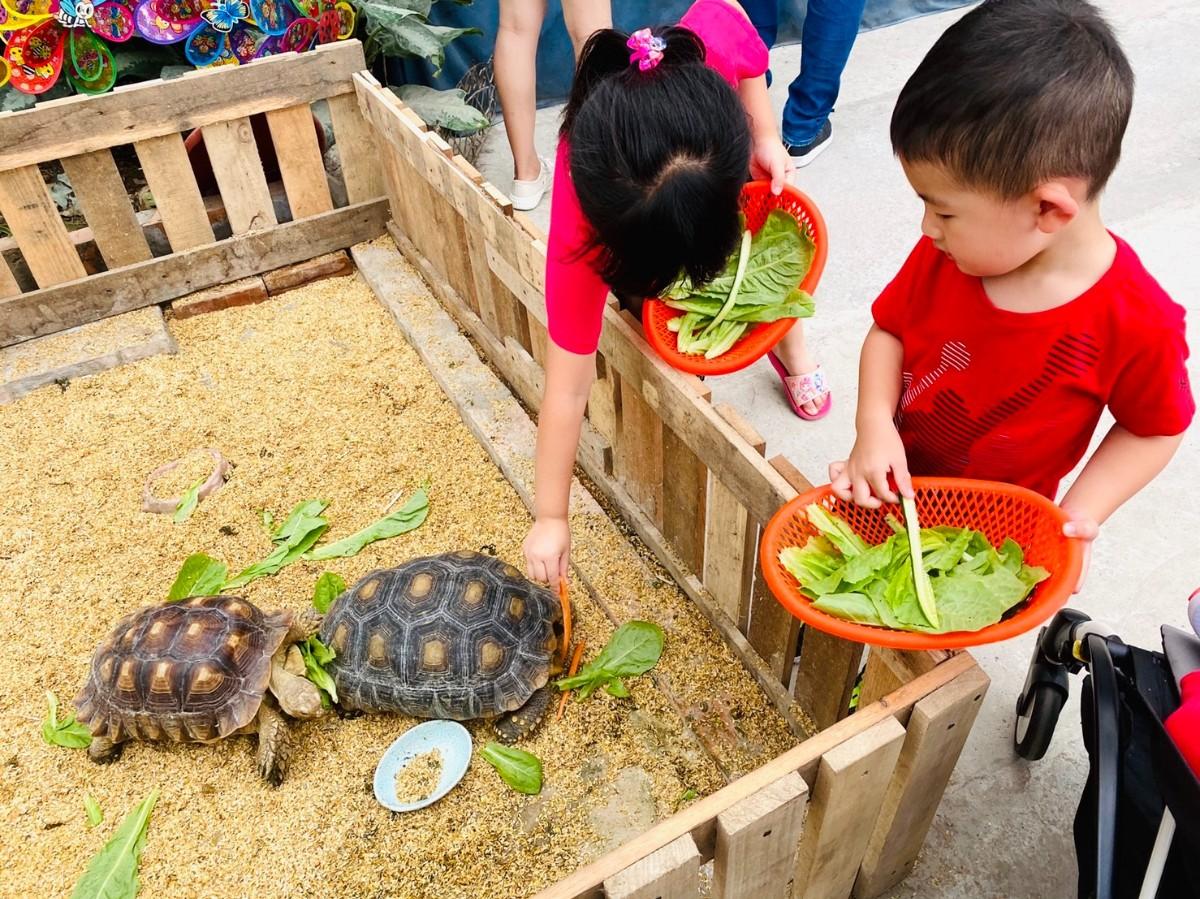 於園區內,不只可近距離體驗生態系統,還可讓寶貝們釣螯蝦、PIZZ DIY、賞螢、餵食可愛動物 (烏龜、兔子及天竺鼠)