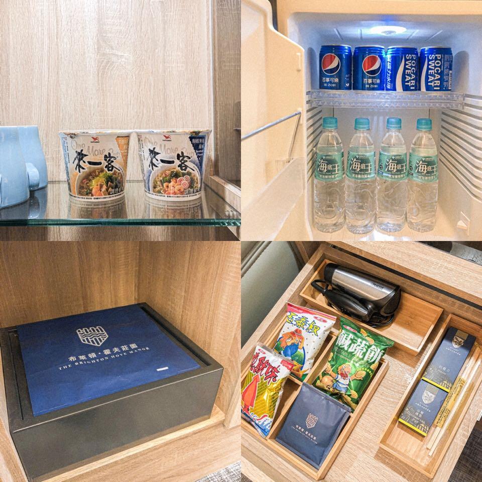 /餅乾泡麵飲料滿滿的陳列在冰箱吧台區