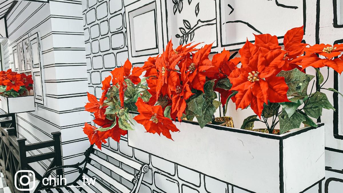 全部設計以黑白為主,配上聖誕紅做點綴。有種遊走在歐洲街頭的感覺。