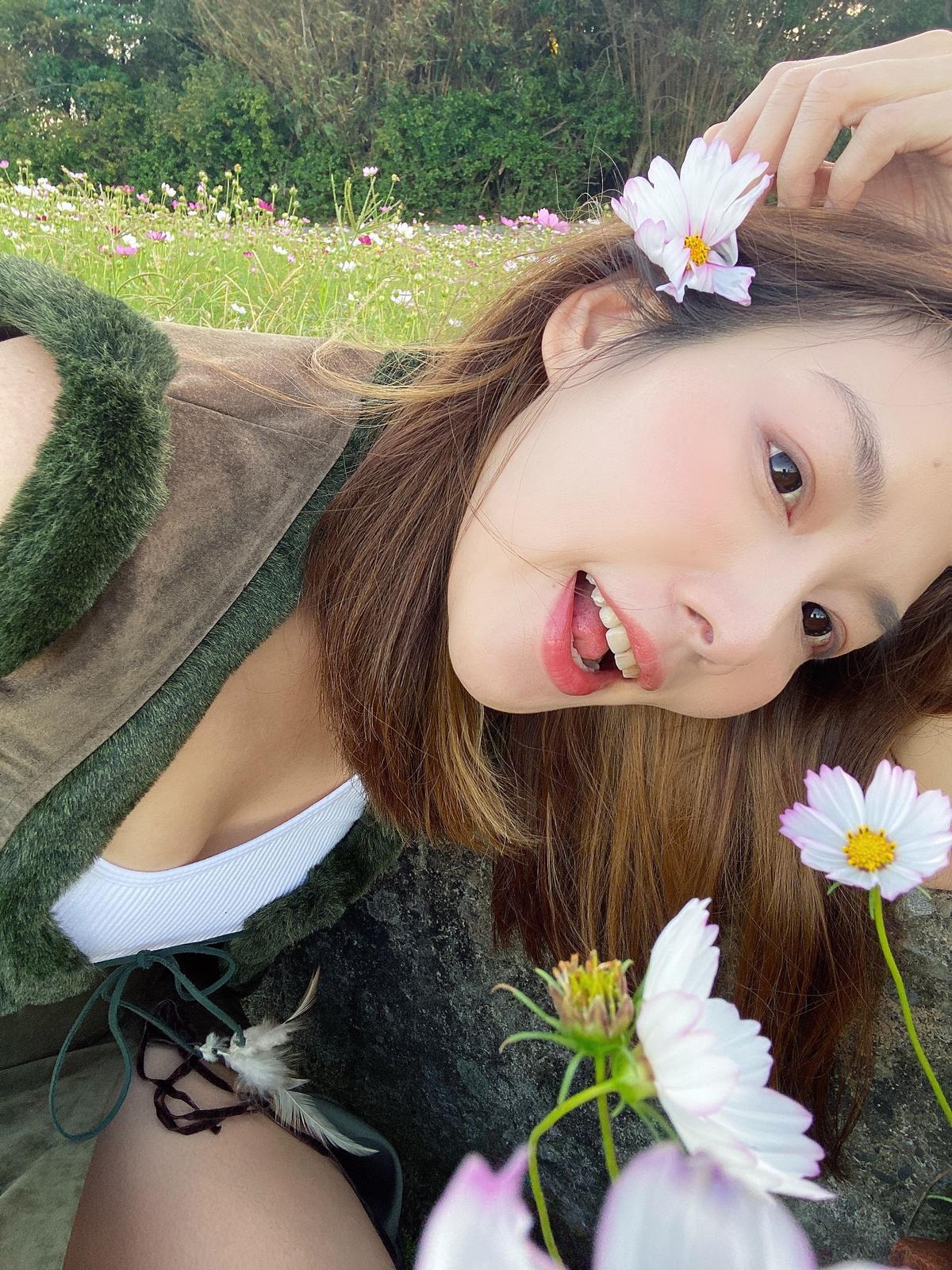 ⚠️愛護大自然花卉不能亂栽,鍾小姐耳朵上的是自然掉落的花朵唷